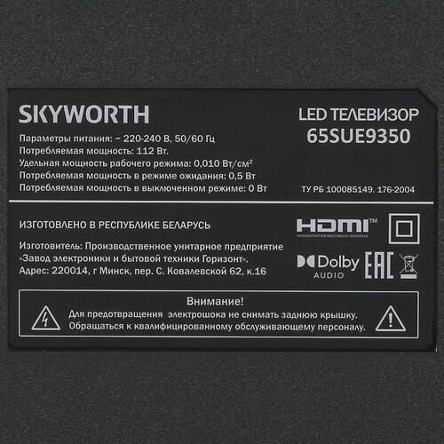 Сохранить65" Телевизор Skyworth 65SUE9350 (4K UHD 3840x2160, Smart TV) черный интересное: