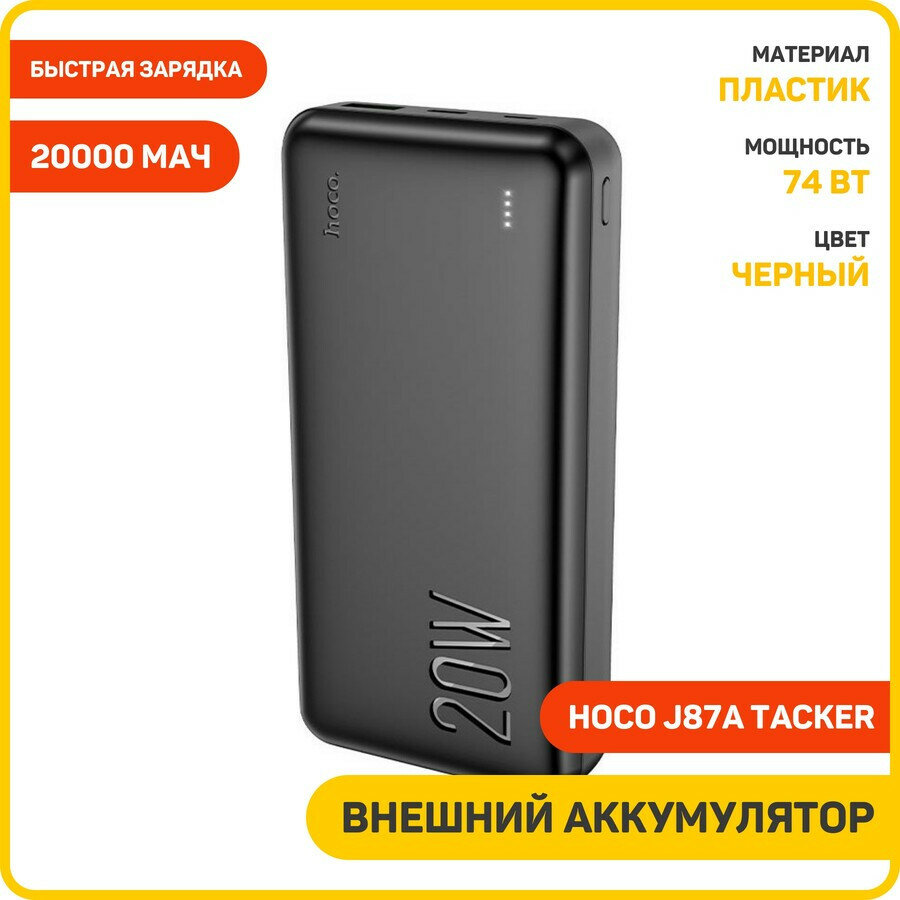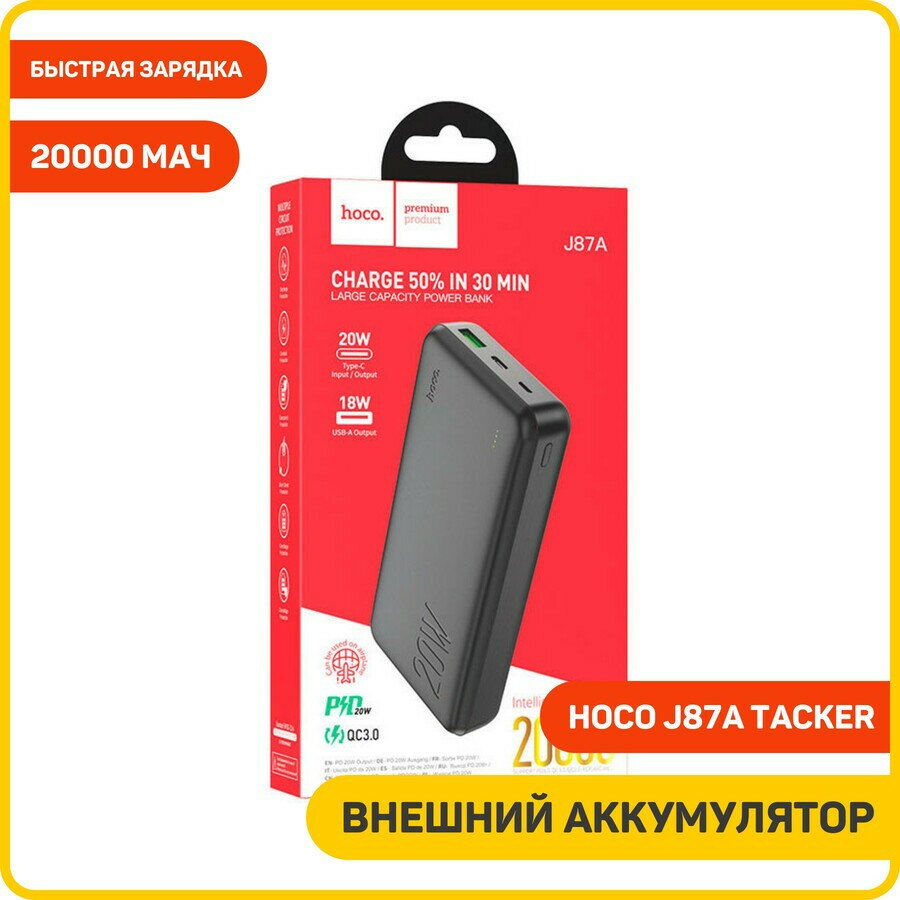 Портативный аккумулятор Hoco J87A Tacker, PD20W+QC3.0, 20000mAh, черный