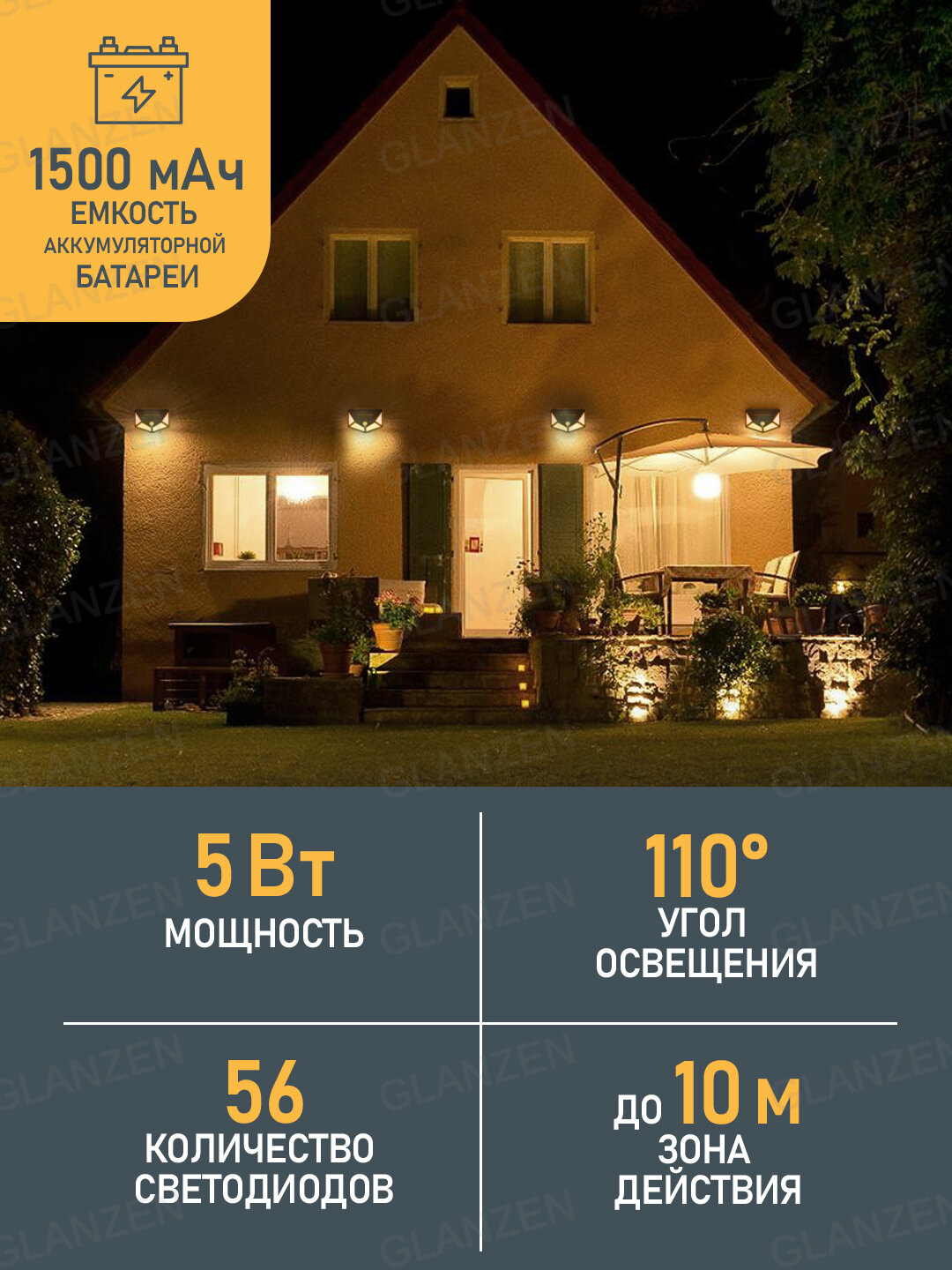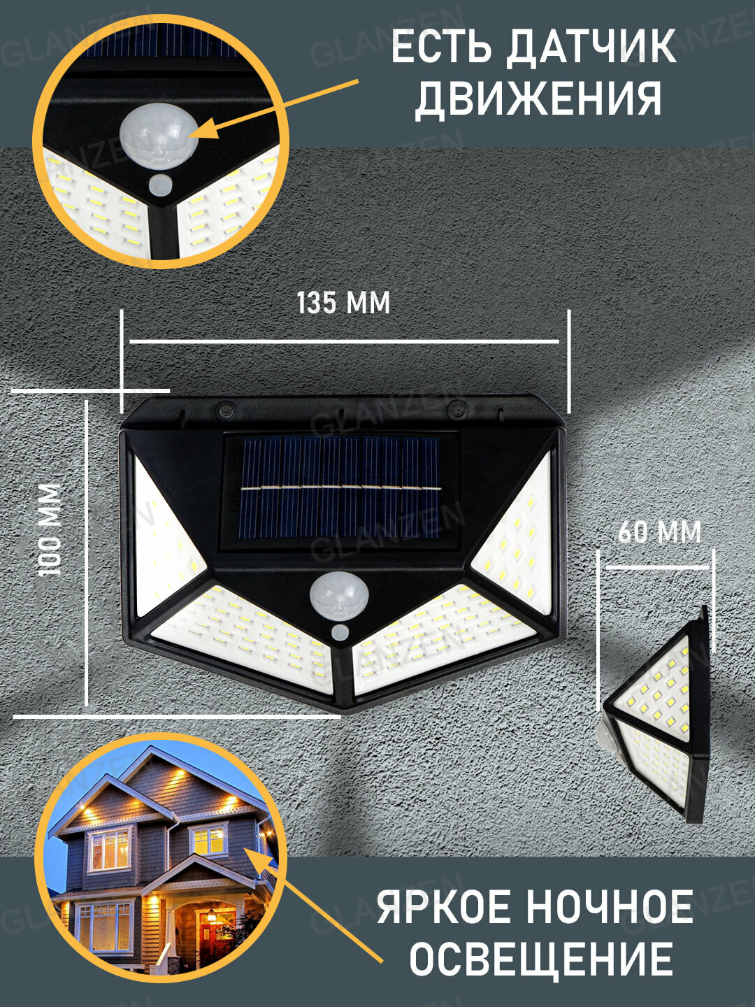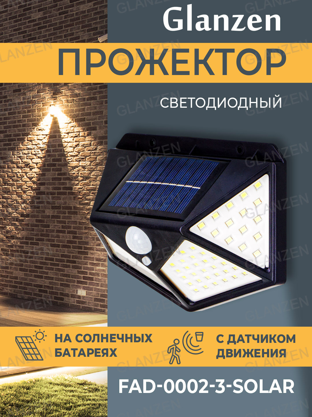Светодиодный прожектор на солнечных батареях GLANZEN с датч. движ. FAD-0002-3-solar КА-00007464 интересное: