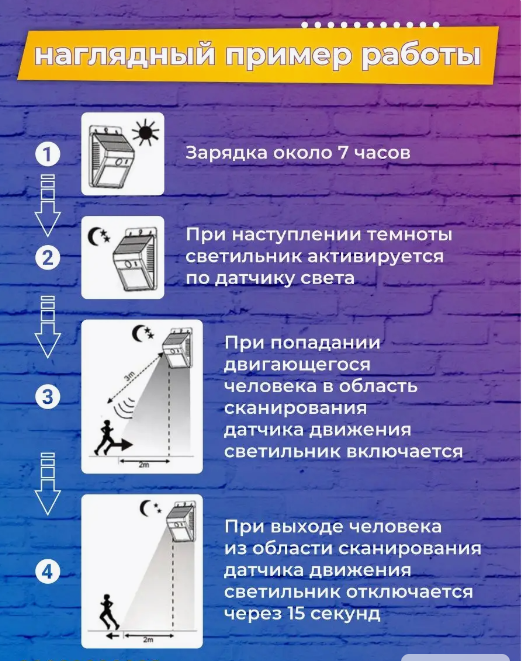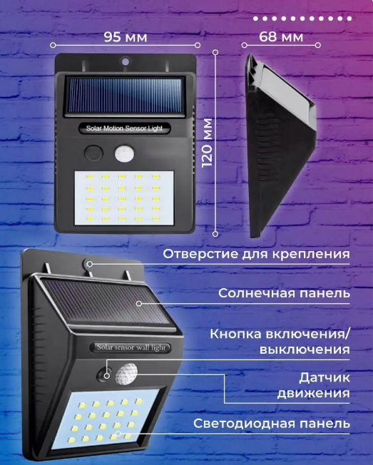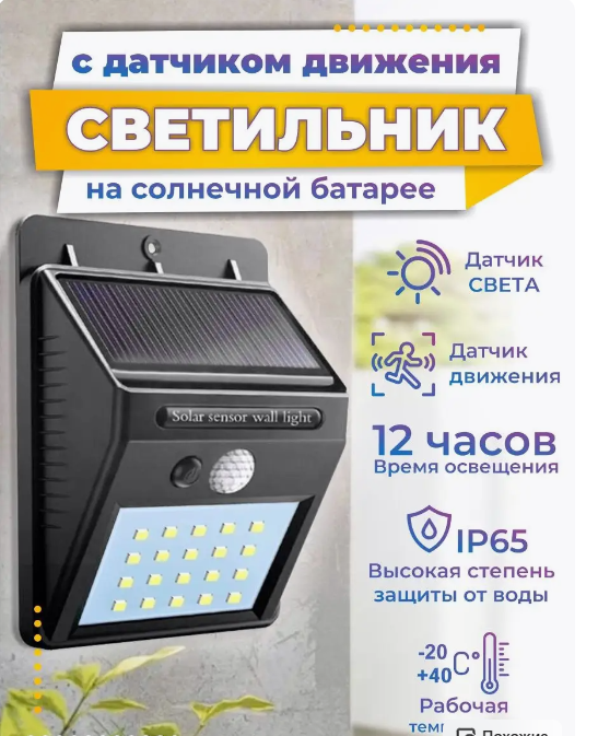 | Плюсы: | Яркий свет, срабатывает на движение, как в описснии |