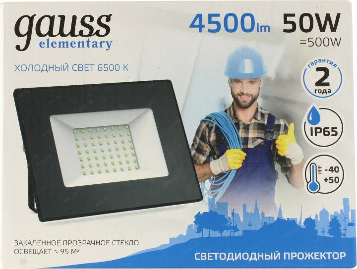 Ниже Вы можете прочитать отзывы на Gauss Прожектор Elementary 50W 4500lm 6500К 200-240V IP65 черный LED 1/10 SQ 613100350, ознакомится с подробными характеристиками, посмотреть интересные обзоры и фотографии на Gauss Прожектор Elementary 50W 4500lm 6500К 200-240V IP65 черный LED 1/10 SQ 613100350.