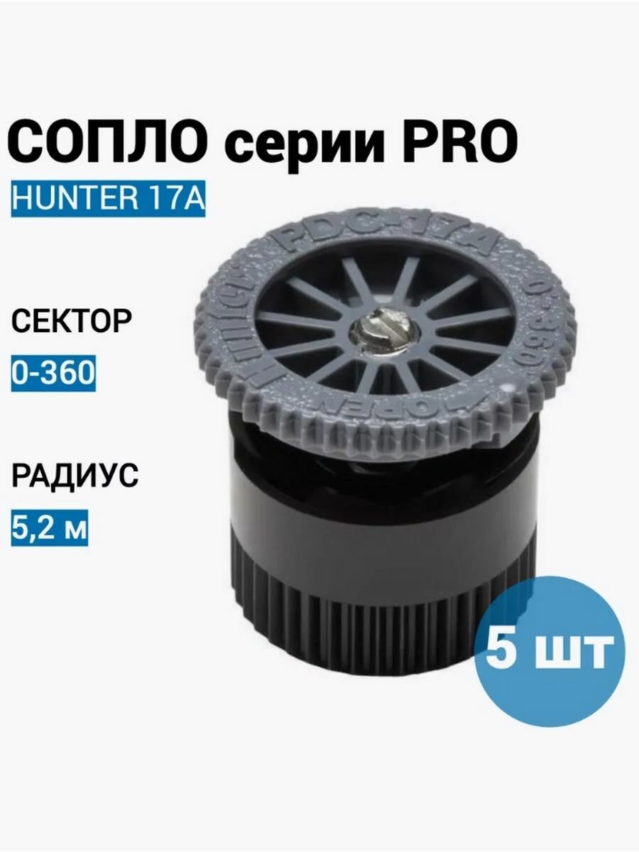 Сопло PRO 17 A 360 (5 шт), форсунка веерная для спринклера (дождевателя),автополив (орошение) сада и газона, радиус полива 4.6-5.8 м, HUNTER