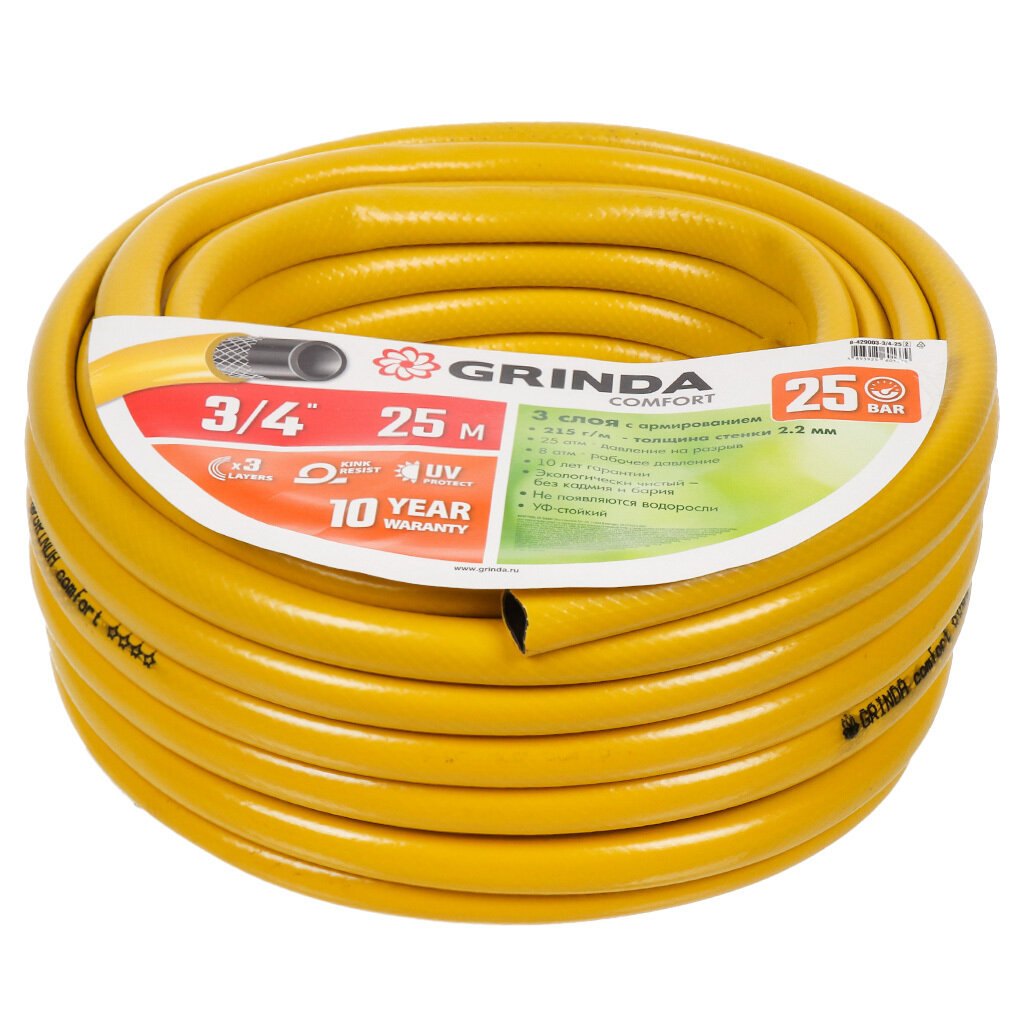 GRINDA COMFORT 3/4″ 25 м, 25 атм, трёхслойный, армированный, Поливочный шланг (8-429003-3/4-25)