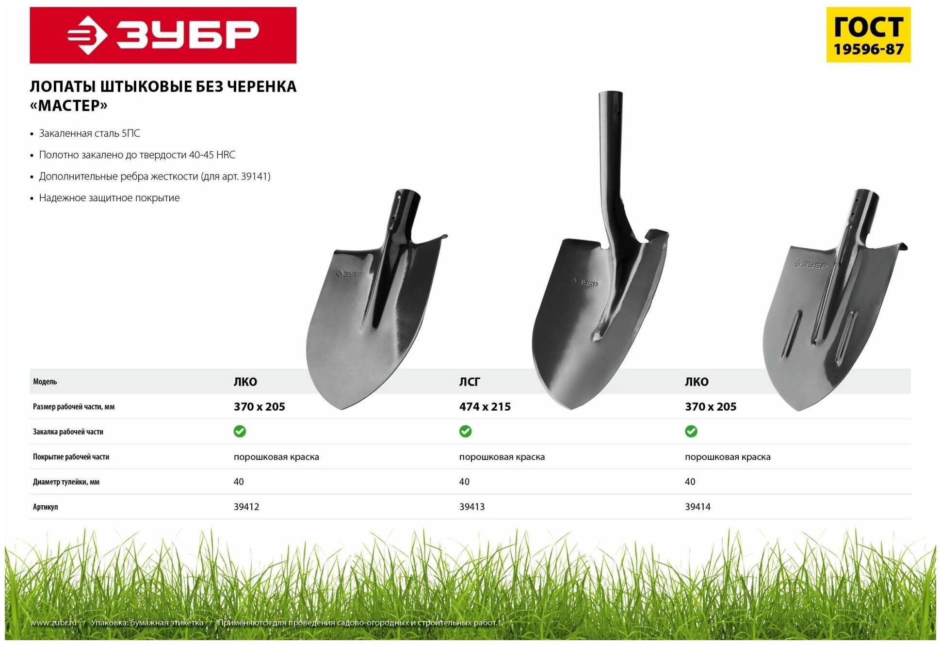 ЗУБР ЛСГ, без черенка, для земляных работ, Штыковая лопата, мастер (39413)