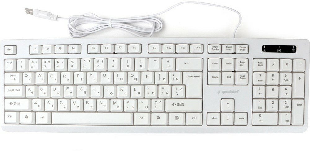 Купить Клавиатура проводная Gembird KB-8355U, мембранная, 104 клавиш, лазер. гравировка, кабель 1.85м,белая