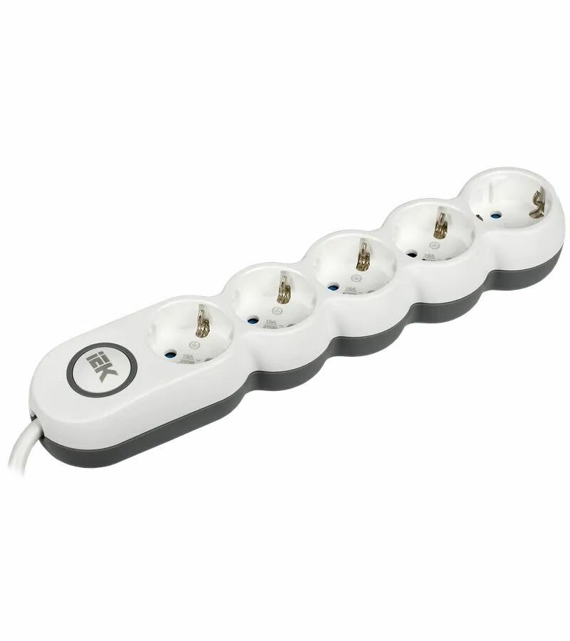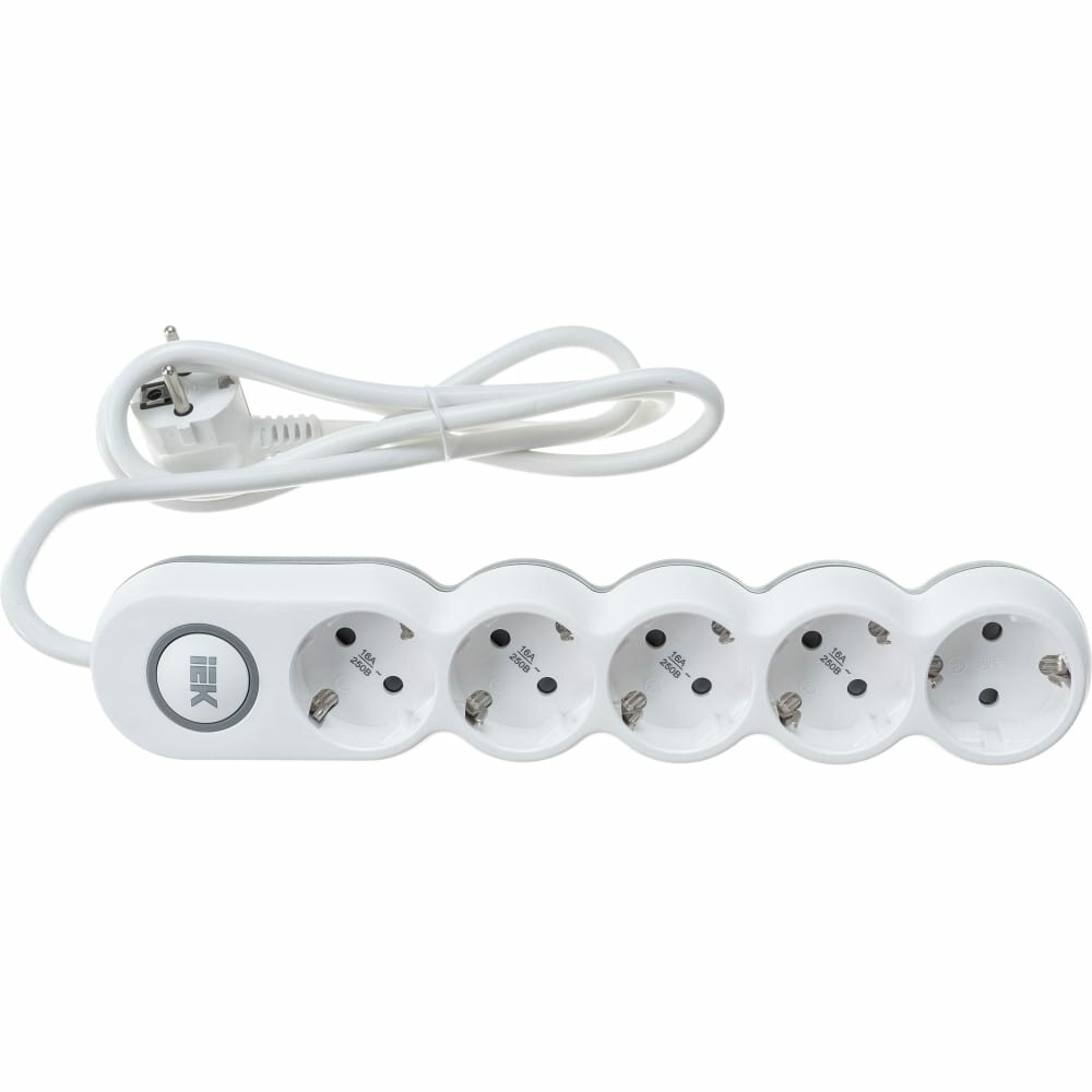 Удлинитель IEK WYP53-16-05-D15-ZK, 5 розеток, 1.5 м, с/з, 16А / 3500 Вт белый