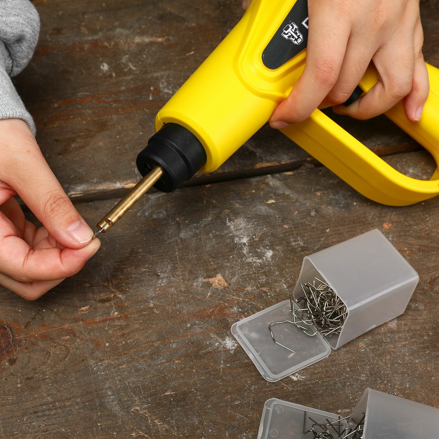 | Плюсы: | Рабочая вещь, паял ей корпус печки авто, скобы нагреваются очень быстро, соединение получается прочным, можно в принципе любые пластиковые вещи ремонтировать, скобы в комплекте 4 вида. |