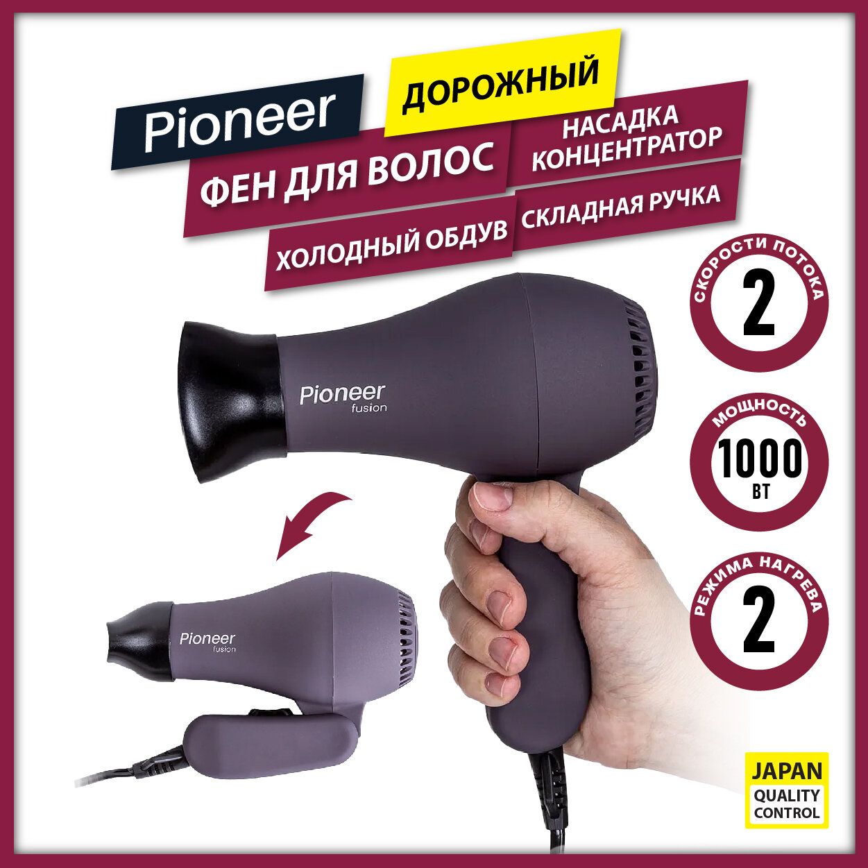 Профессиональный фен для волос Pioneer HD-1009 со складной ручкой и насадкой-концентратором, 2 скорости воздушного потока, 1000 Вт