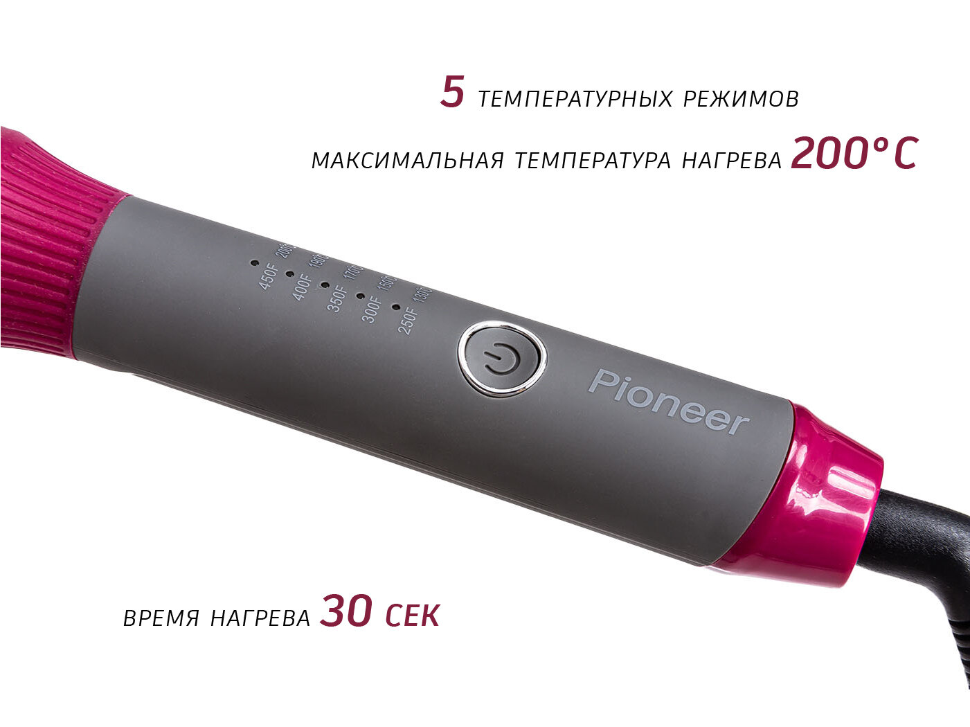 Плойка Pioneer HS-10125, розовый/серый