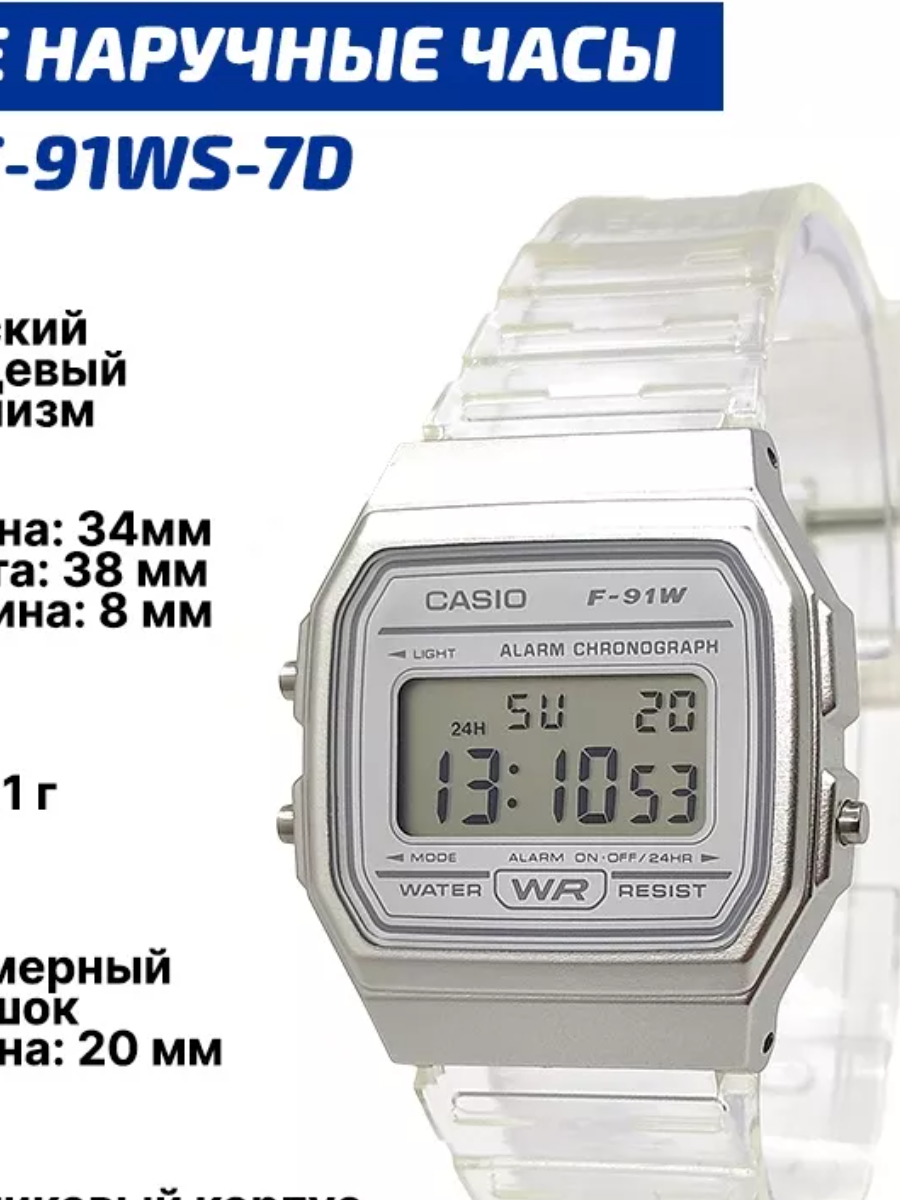 Ниже Вы можете прочитать отзывы на Casio F-91WS-7D, ознакомится с подробными характеристиками, посмотреть интересные обзоры и фотографии на Casio F-91WS-7D.