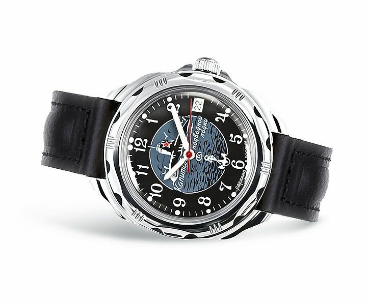 Мужские наручные часы Восток Командирские 811719-classic, натуральная кожа, черный