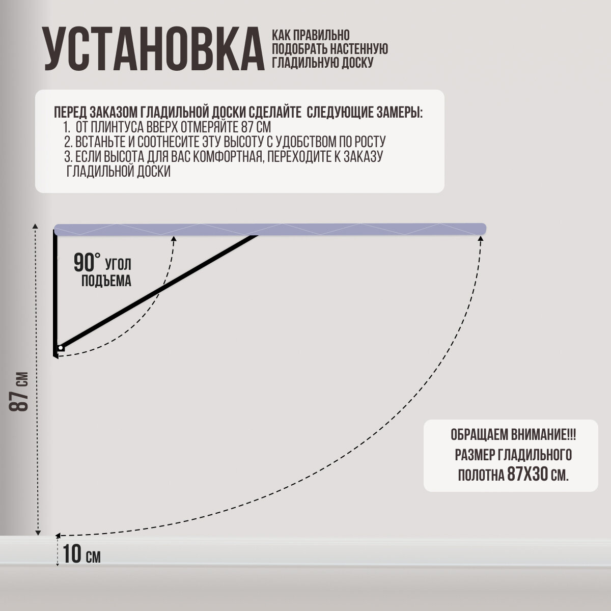 | Размеры гладильной поверхности (ДхШ) | 87 x 30 см |