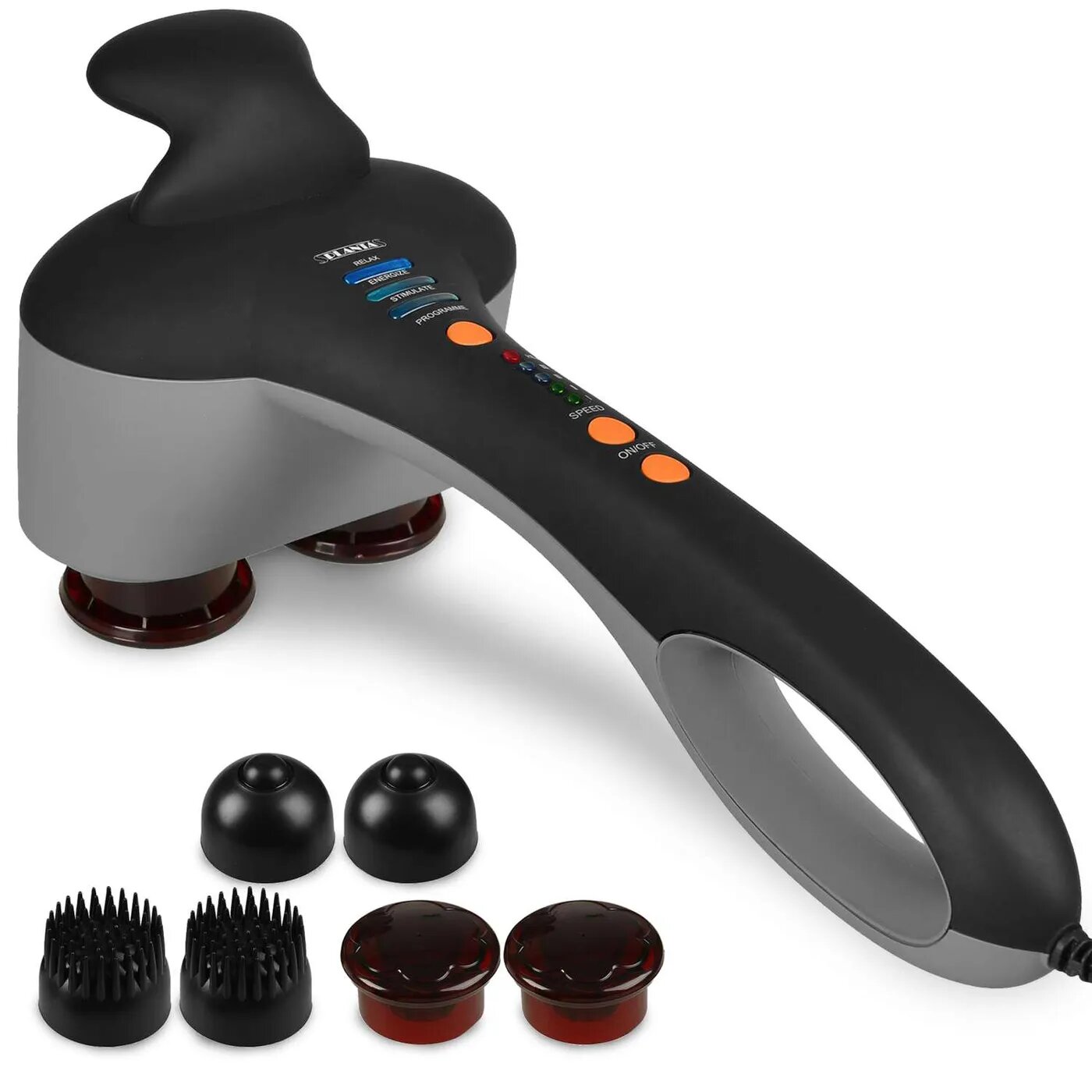 PLANTA Ручной массажер для тела MHH-60 с двойными массажными головками, 3 пары насадок, 4 режима, 4 скорости, с функцией подогрева