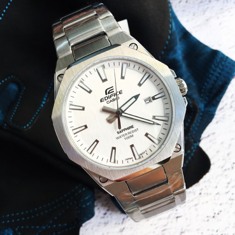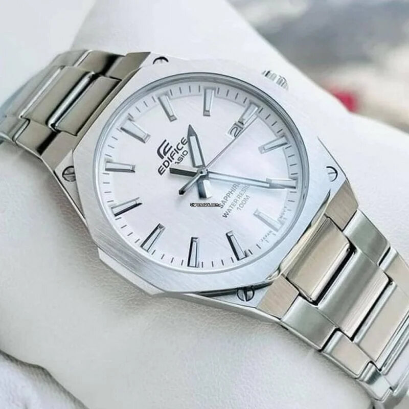 Я готов был бы доплатить за модель с солнечной батарейкой, но конкретно такой, к сожалению, не существует у edifice Восьмиугольный дизайн шикарен, циферблат скорее серебристый, чем белый Продавец отличный, все пришло в пленках, надежно запаковано + гарантия от магазина 2 года Рекомендую! |