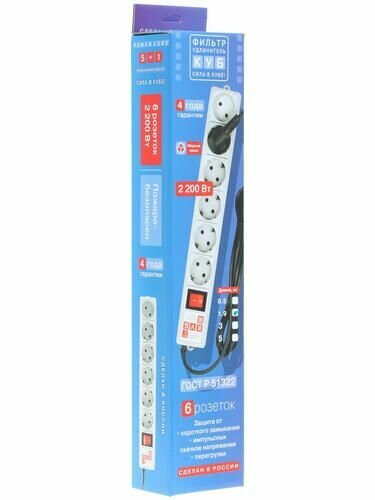 Сетевой фильтр Power Cube B, 5.0м, 5+1 розетка, серый (SPG(5+1)-B-15)