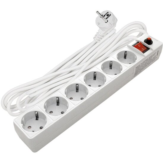 Удлинитель с сетевым фильтром 6х7м с заземл. 10А IP20 ПВС 3х0.75 защ. шторки бел. Universal , 967U-3007