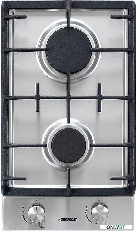 Газовая варочная поверхность NORDFROST HS 3022 X, электророзжиг, 2 конфорки, чугунные решетки, нержавеющая сталь