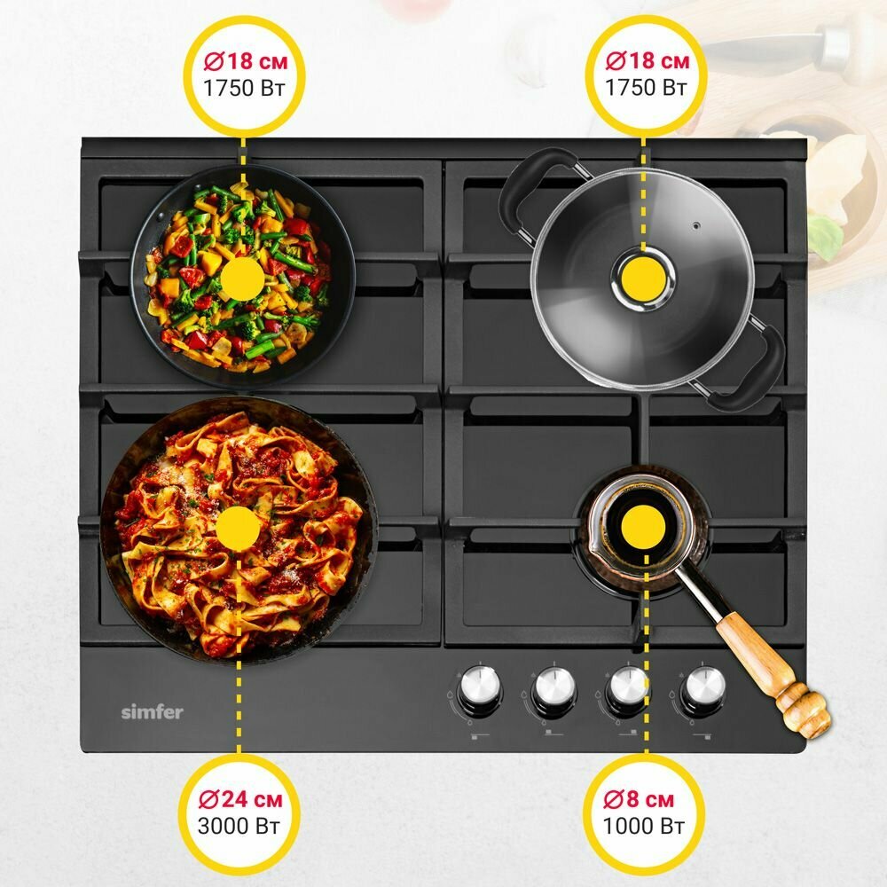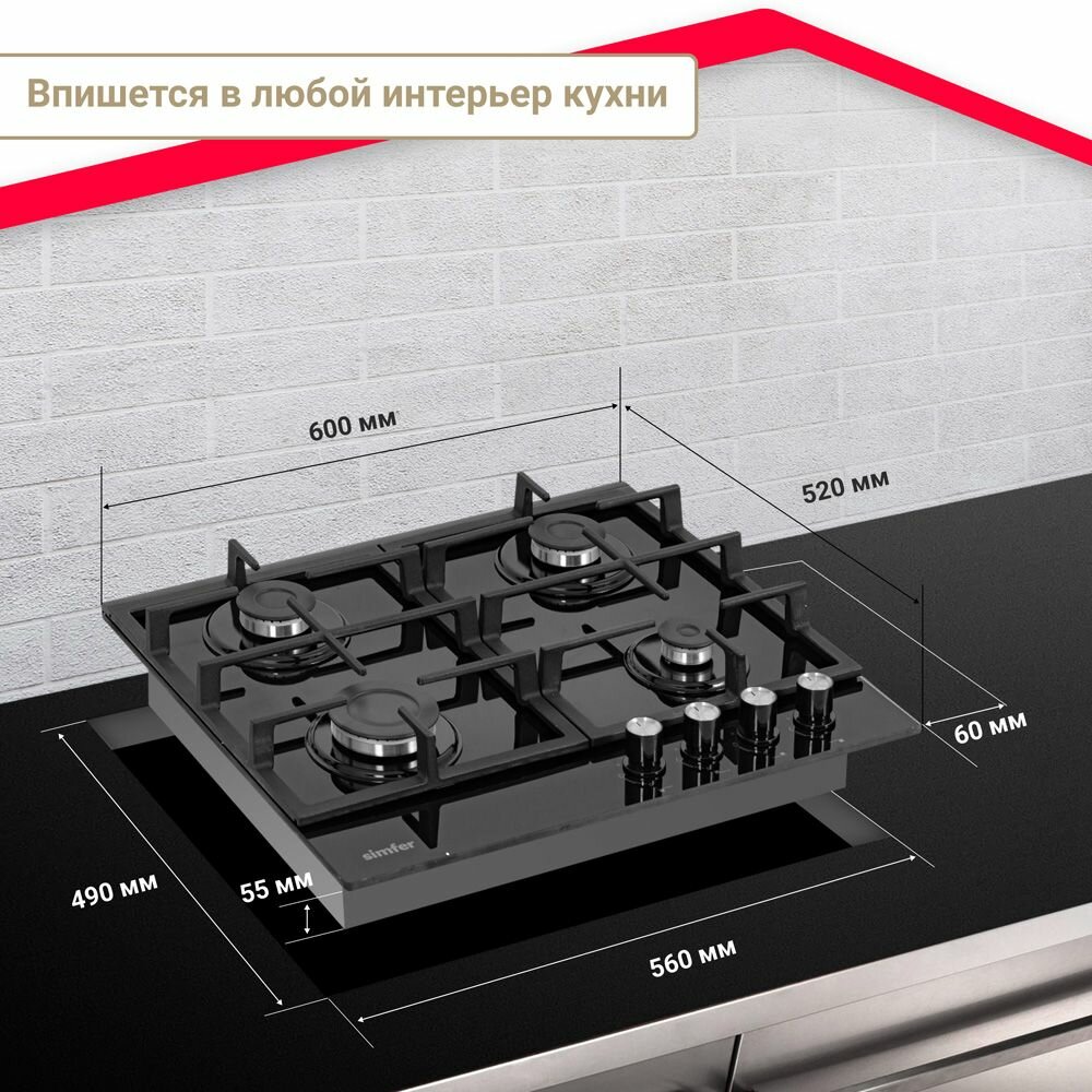 Газовая варочная панель Simfer H60H40B516, газконтроль, автоподжиг, черная интересное: