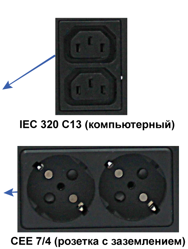 | Тип выходных разъемов питания | CEE 7 (евророзетка) / IEC 320 C13 (компьютерный) |