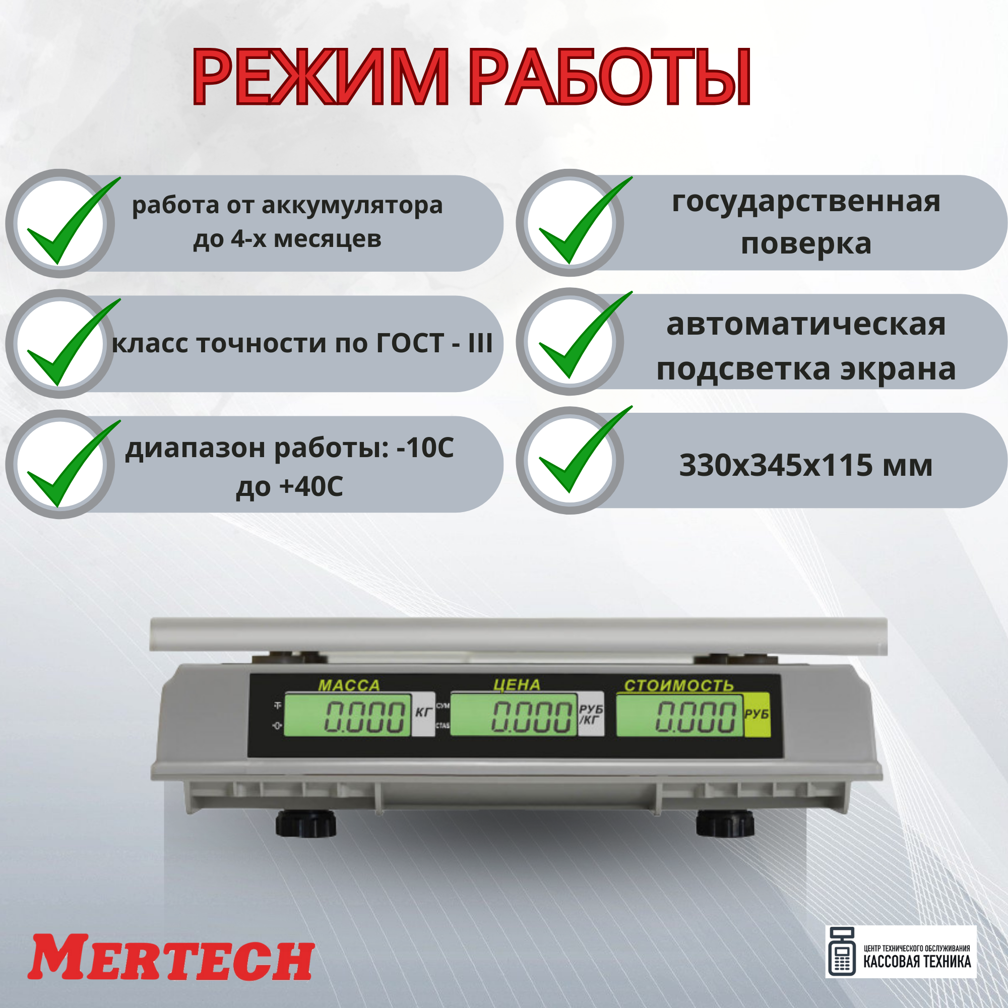 Весы торговые MERTECH M-ER 326AC-15.2 LCD (0,04-15 кг), дискретность 5 г, платформа 325x230 мм, без стойки, 3040