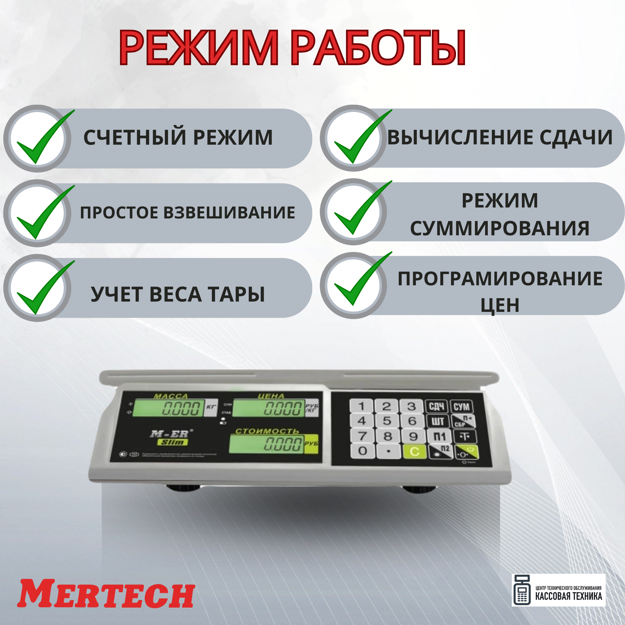 Купить Весы торговые MERTECH M-ER 326AC-15.2 LCD (0,04-15 кг), дискретность 5 г, платформа 325x230 мм, без стойки, 3040 (арт. 290776)