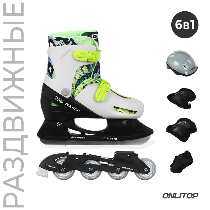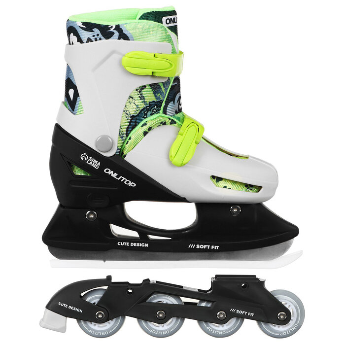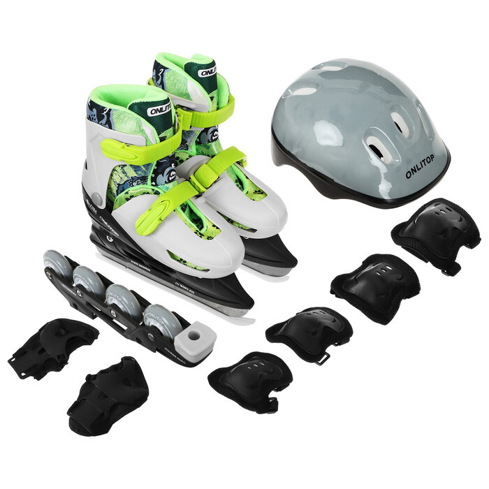 Набор: коньки ледовые раздвижные 223Y с роликовой платформой, PVC колёса, с защитой, размер 30-33 On .