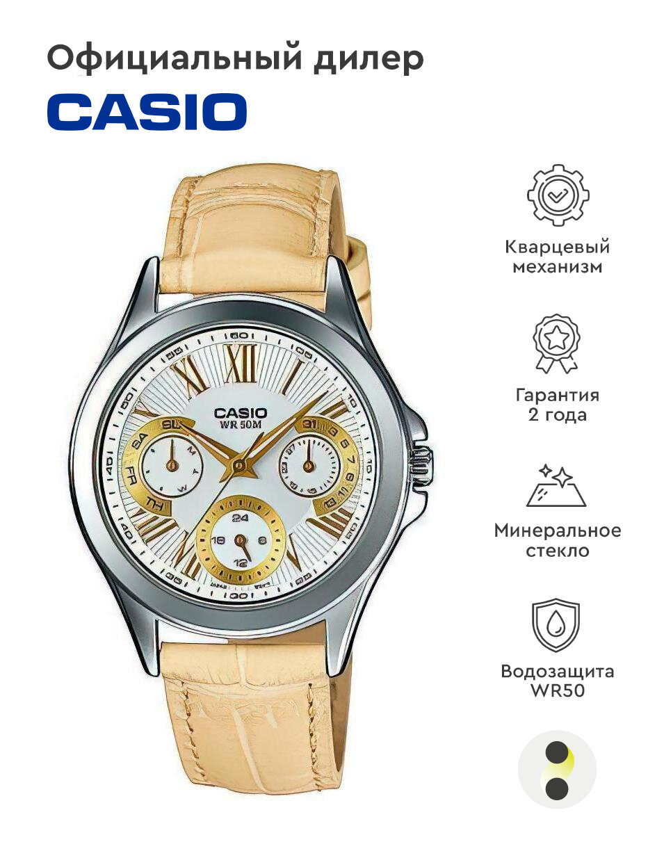 Наручные часы CASIO LTP-E308L-7A1, белый, бежевый