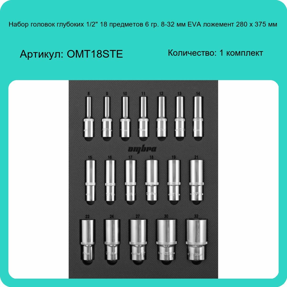 OMBRA OMT18STE Набор головок глубоких 1/2" 18 пр. 6 гр. 8-32 мм EVA ложемент 280 х 375 мм Ombra