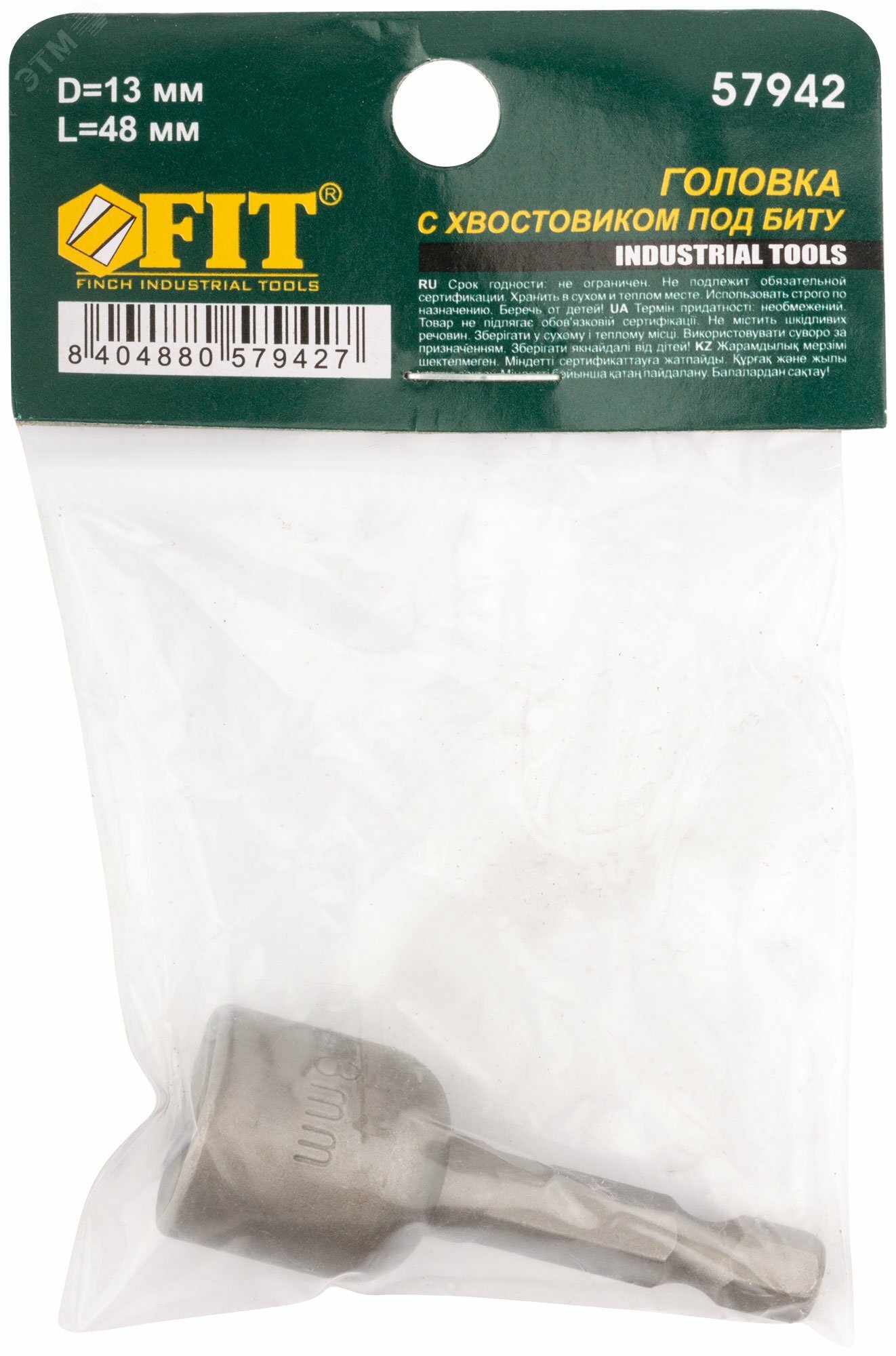 Бита с торцевой головкой 13*48мм магнитная FIT 57942 (для кровельных саморезов)