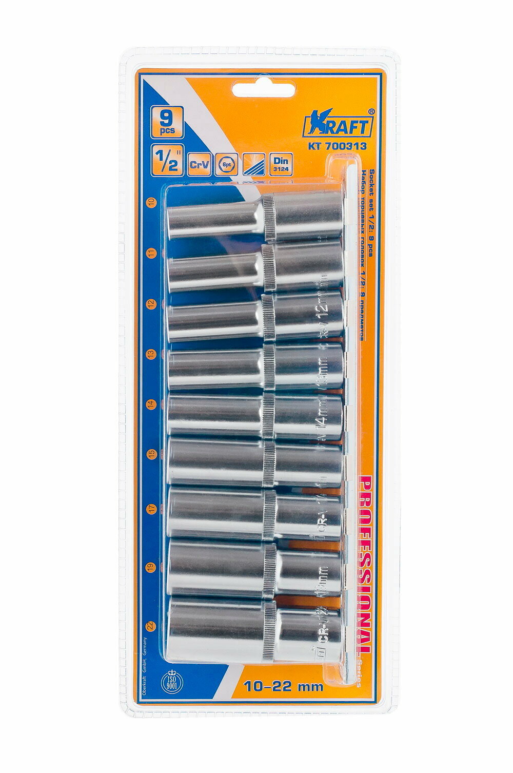 KRAFT KT 700313 Набор головок торцевых 1/2"Dr Высокие 9 шт. 10-22 мм