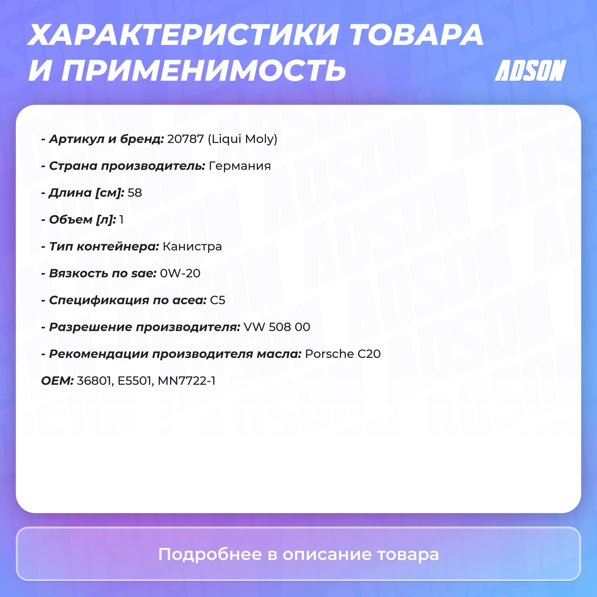 Масло моторное LIQUI MOLY / арт. 20787 - (1 шт)