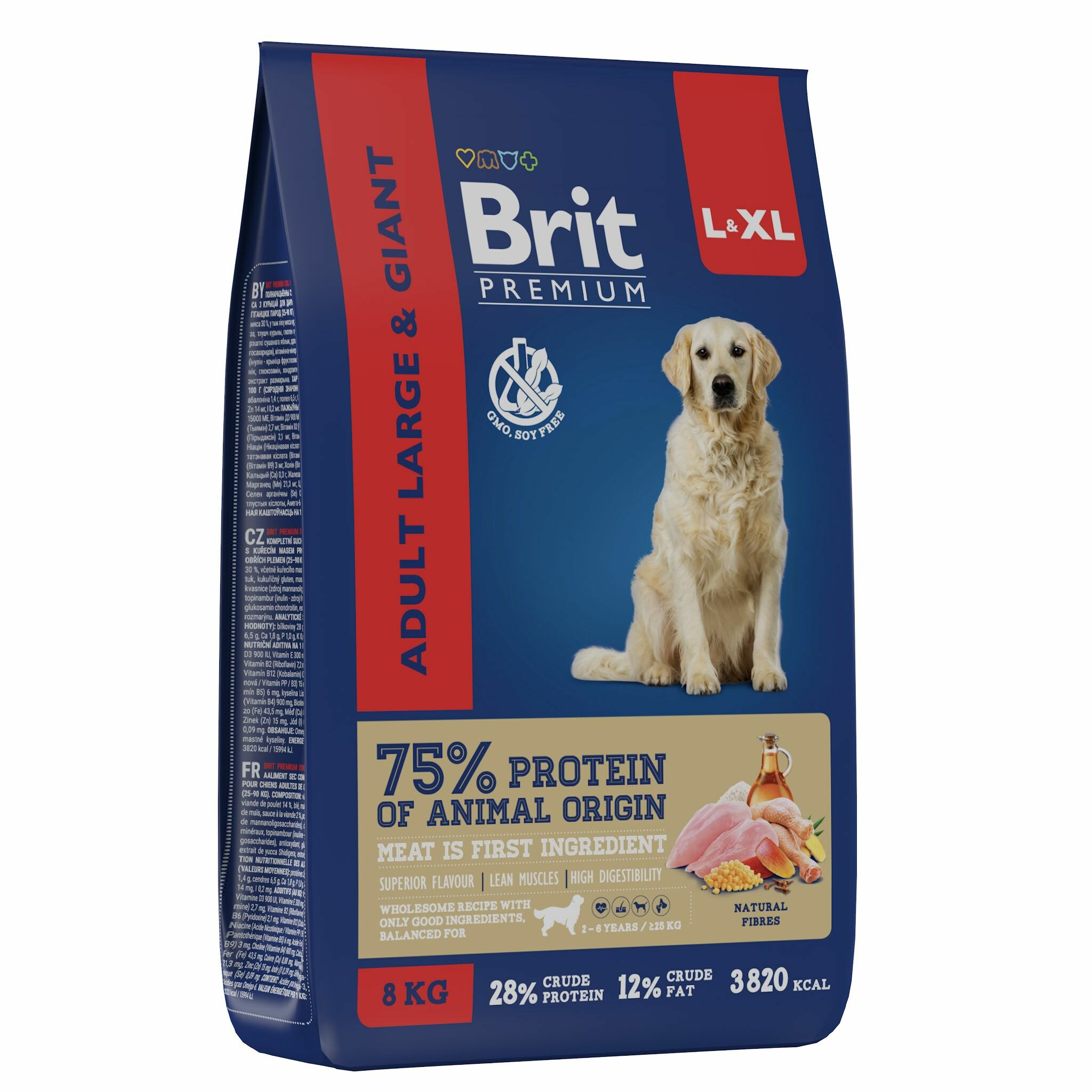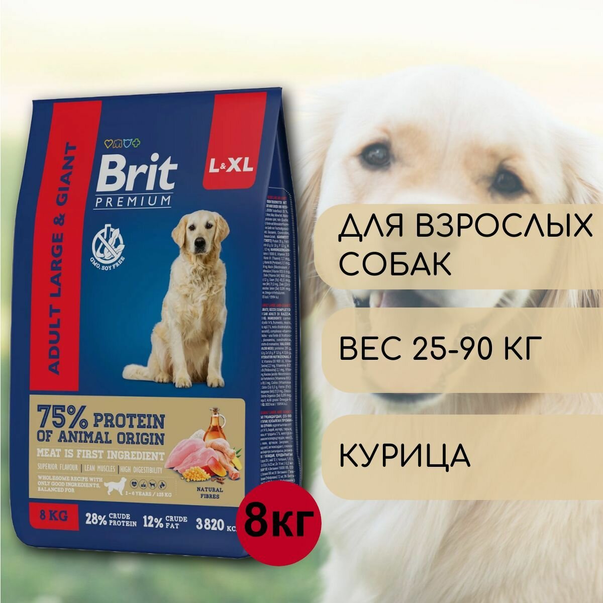 Сухой корм Brit Premium Adult Large & Giant для собак крупных и гигантских пород с курицей, 8 кг
