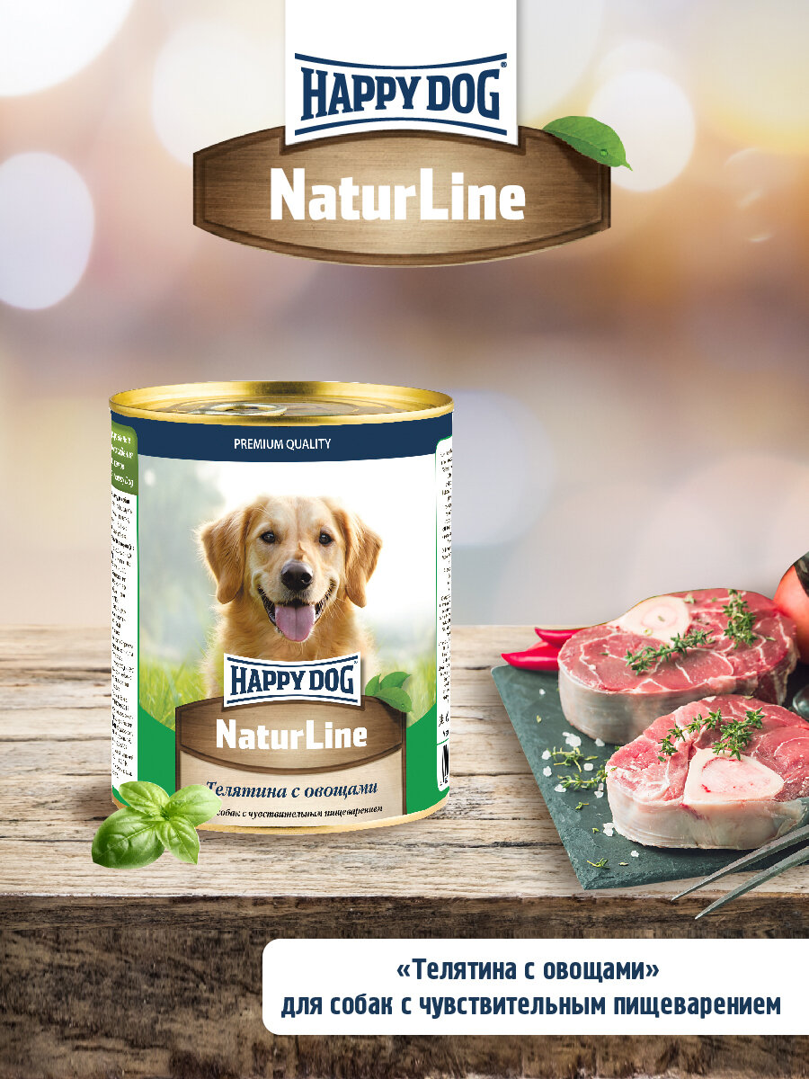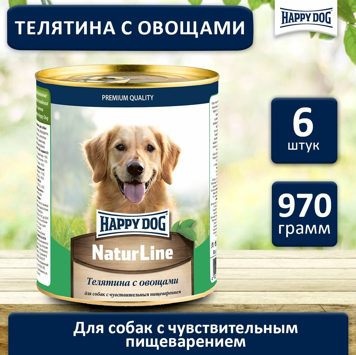 Влажный корм для собак Happy Dog NaturLine, телятина, с овощами (6 шт. х 970 г)
