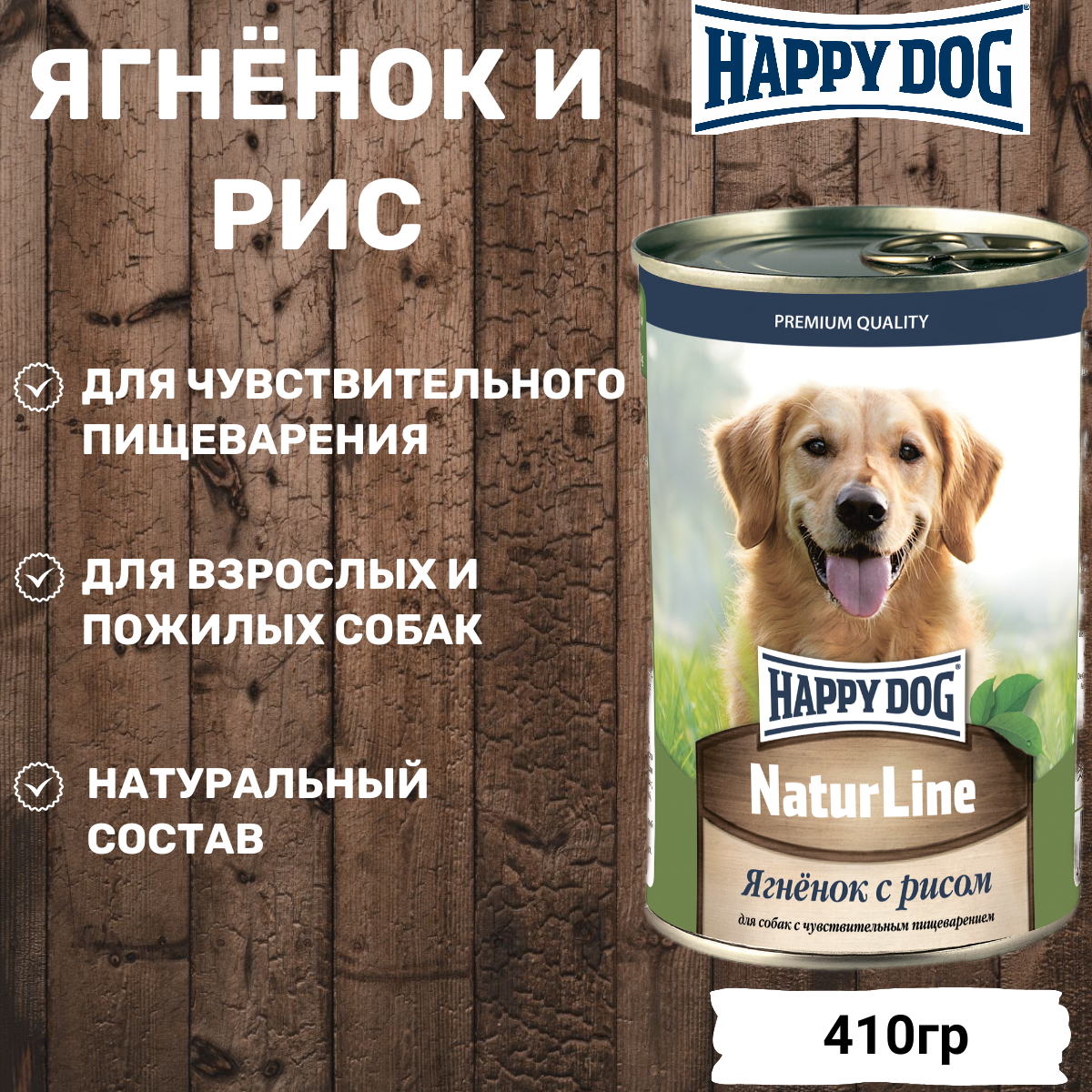 Влажный корм для собак Happy Dog NaturLine, ягненок, с рисом 12 шт. х 410 г