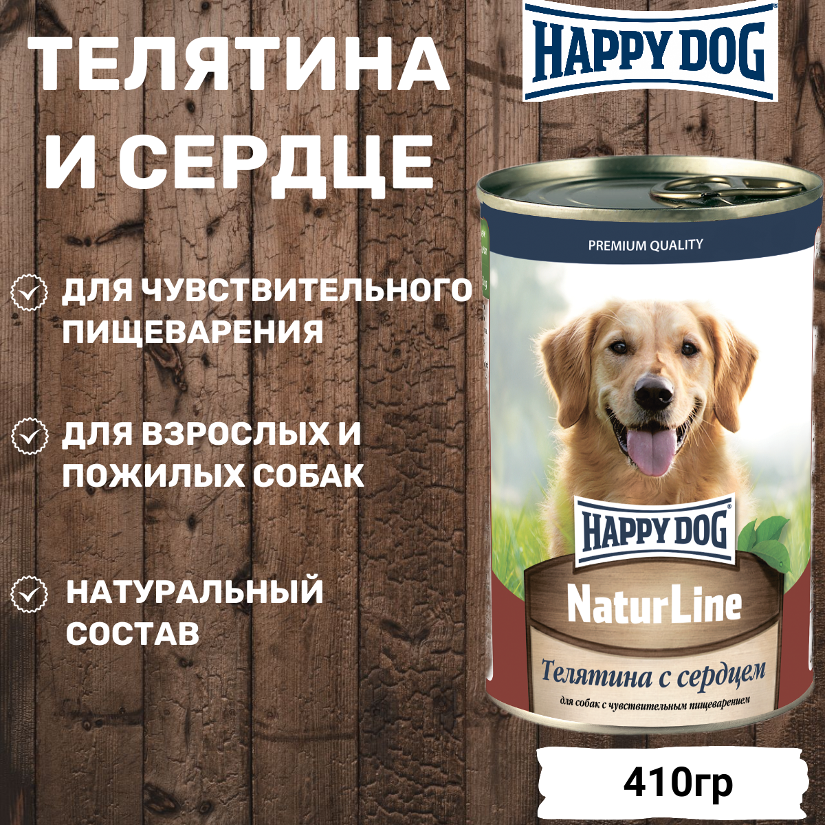 Влажный корм для собак Happy Dog NaturLine, телятина, сердце 20 шт. х 410 г