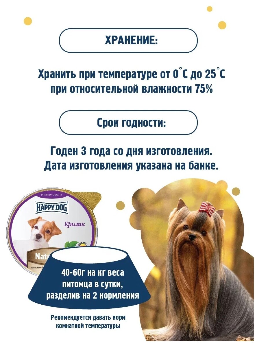 HAPPY DOG NATUR LINE для взрослых собак маленьких пород паштет с кроликом (125 гр х 10 шт)