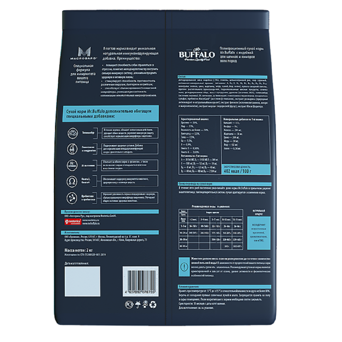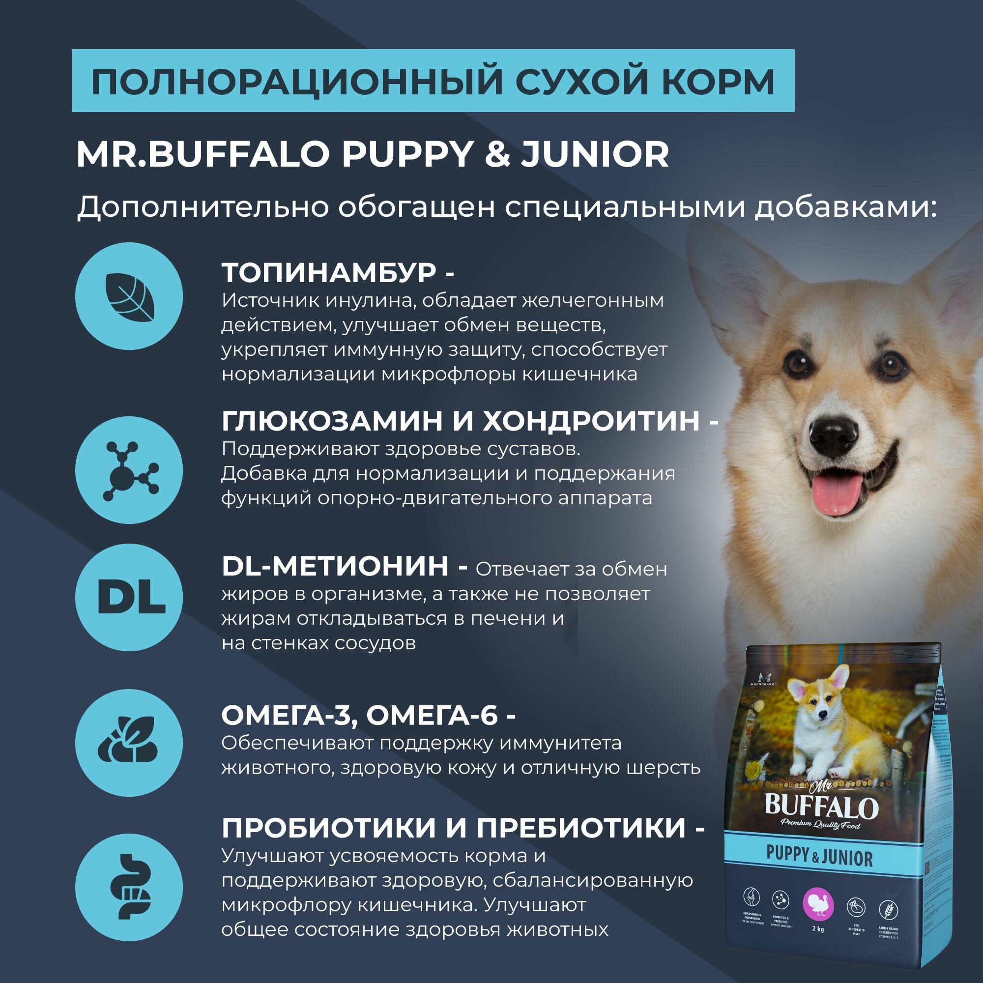 Mr.Buffalo PUPPY & JUNIOR для щенков и юниоров всех пород с индейкой 2 кг