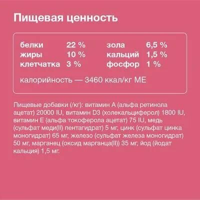 | Витамины | А, D3, Е, таурин, L-карнитин |