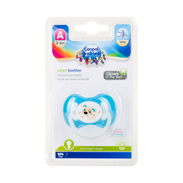 Canpol Пустышка круглая латексная 0-6 Bunny & company голубая, 1 шт