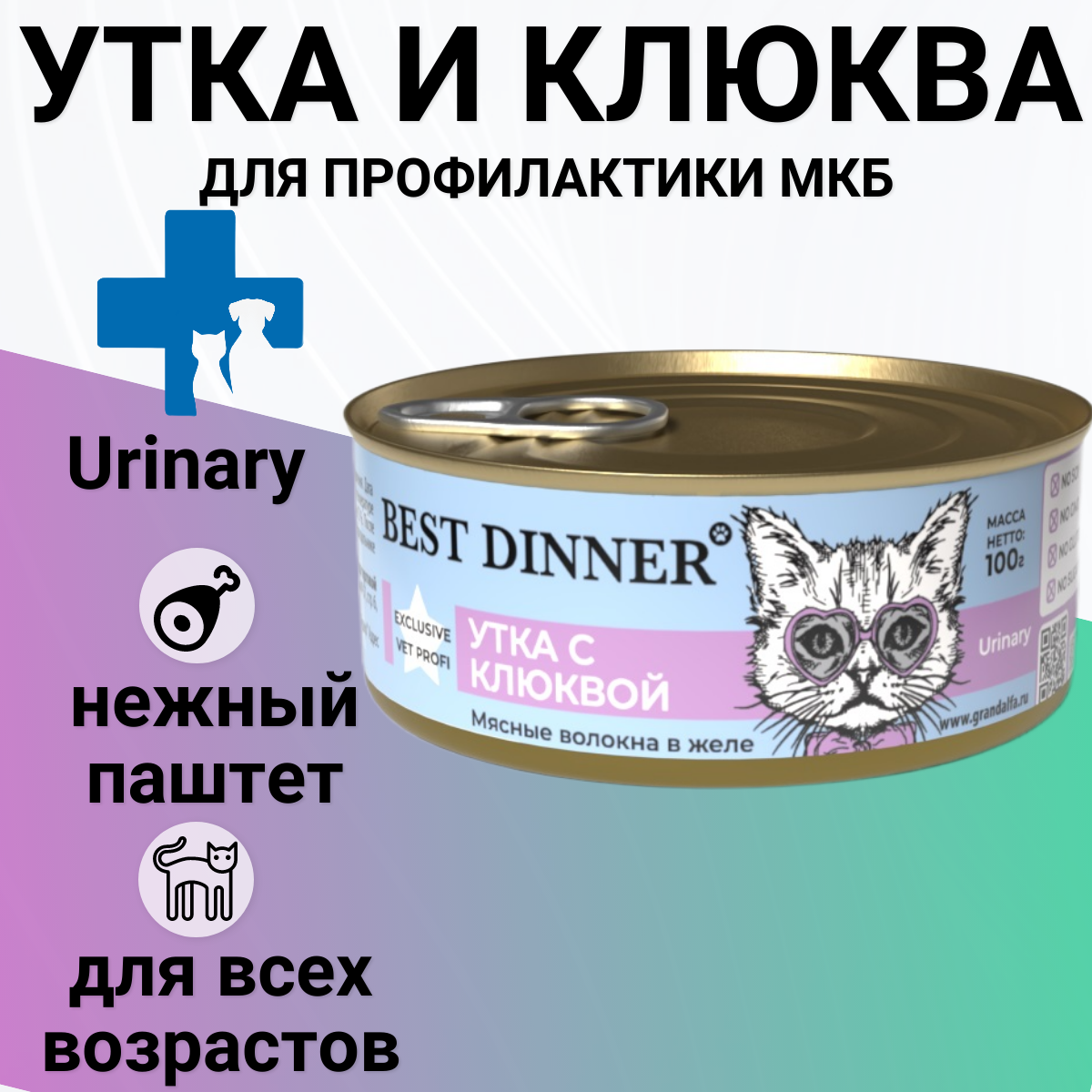 BEST DINNER Vet Profi Exclusive Urinary Корм влаж.утка с клюквой д/кошек конс.100г