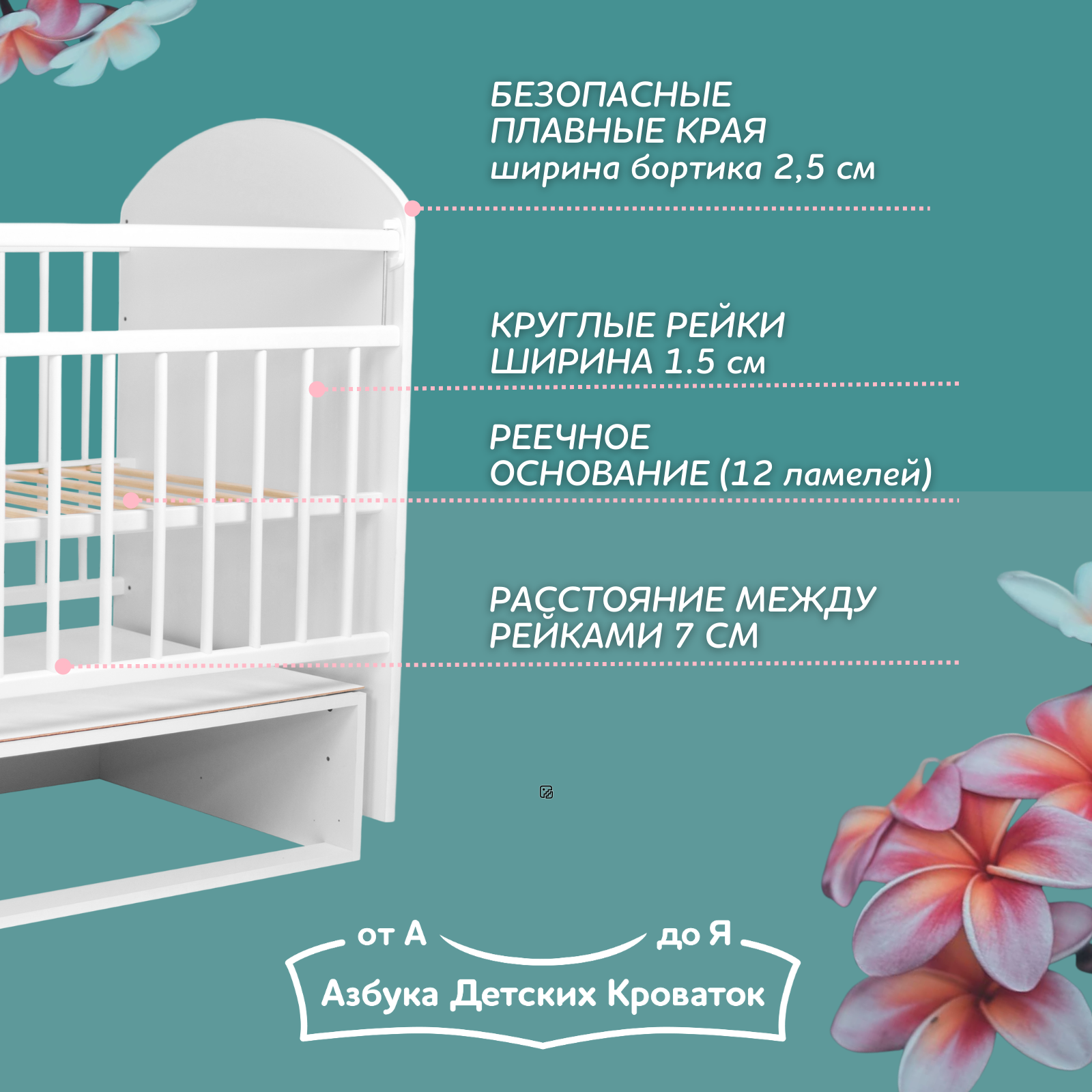 Детская кровать для новорожденных с маятником 120*60 Bellucci Азбука Кроваток, белый, деревянный интересное: