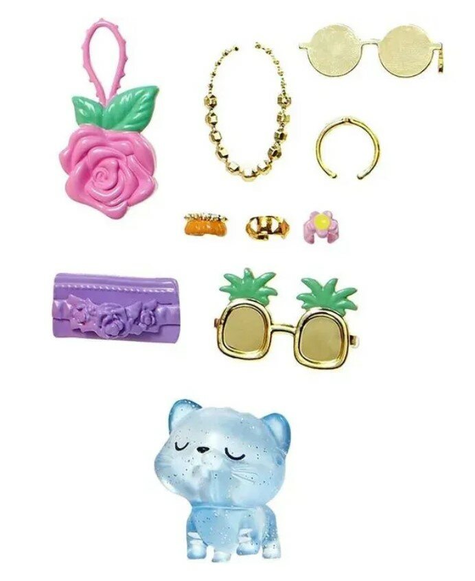 | Комплектация | 1 кукла,1 питомец,8 предметов одежды,13 аксессуаров (аксессуары включают в себя украшенную жемчугом сумочку, белый пояс с бантом, серебристые украшения, солнцезащитные очки, повязку на голову с кошачьими ушками и многое другое) |
