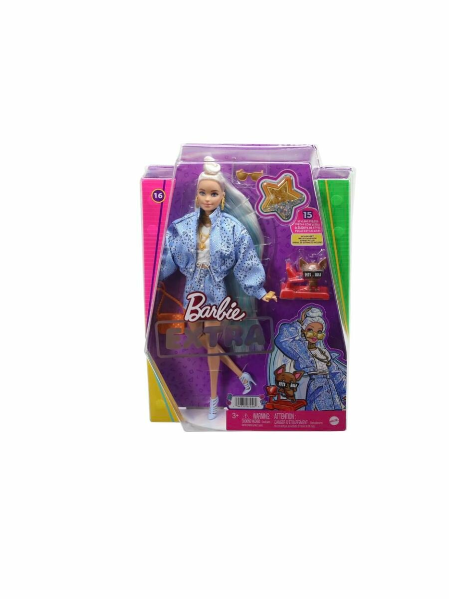 Купить HHN08 Игровой набор Barbie EXTRA - Кукла Барби с 15 модными аксессуарами и фигуркой собачки (материал: пластик, текстиль), серия EXTRA, возраст 3+