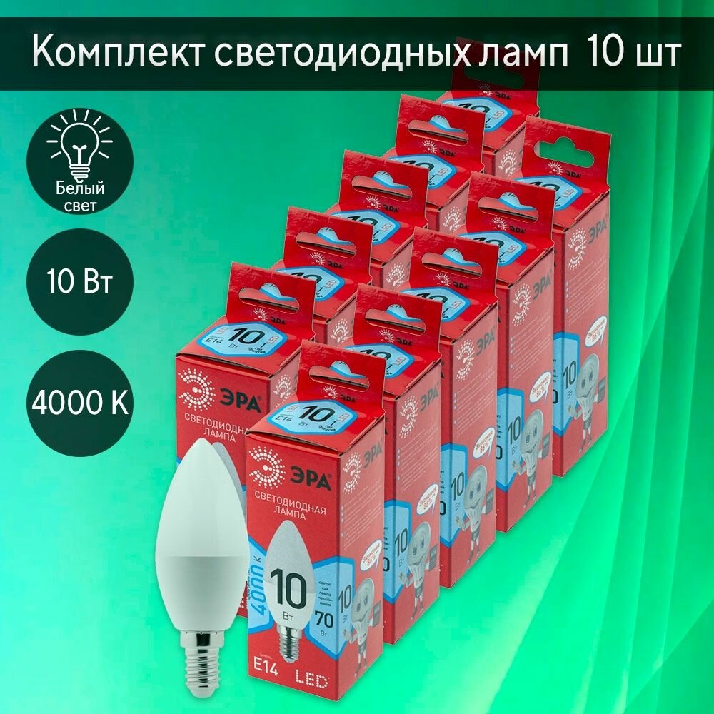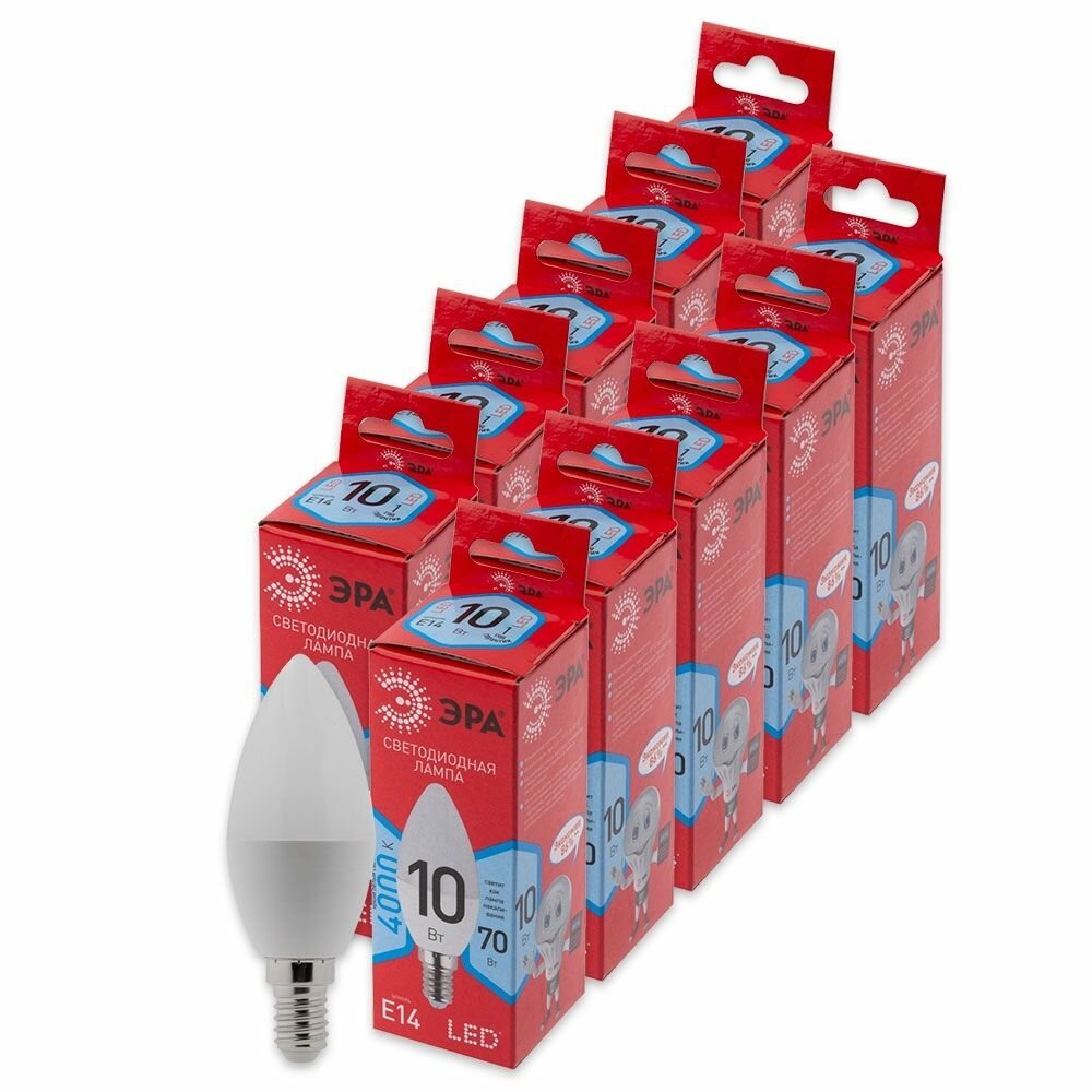Лампа светодиодная ЭРА, 10(70)Вт, цоколь Е14, свеча, нейтральный белый, 25000 ч, LED B35-10W-4000-E14, Б0049642 упаковка 10 шт.
