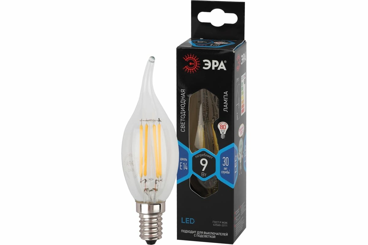 СохранитьЛампочка светодиодная ЭРА F-LED BXS-9W-840-E14 Е14 9Вт филамент свеча на ветру нейтральный белый свет арт. Б0047005 (1 шт.) интересное: