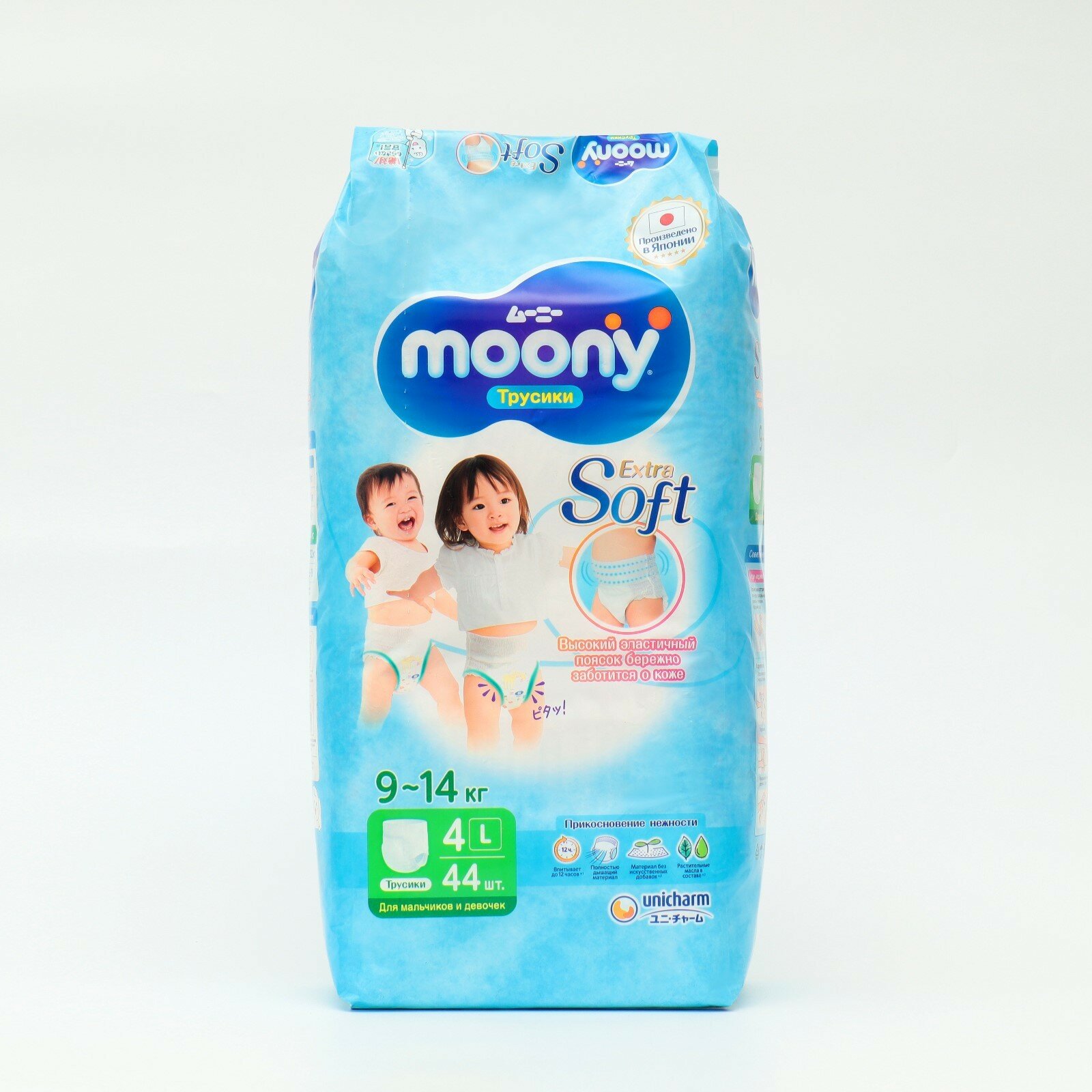 Подгузники трусики детские Moony Extra Soft универсальные 4 L 9-14 кг, 44 шт