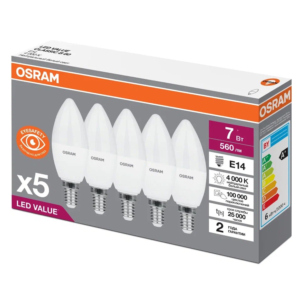 Светодиодная лампа Ledvance-osram LVCLB60 7SW/840 230V E14 OSRAM (упаковка 5 шт)