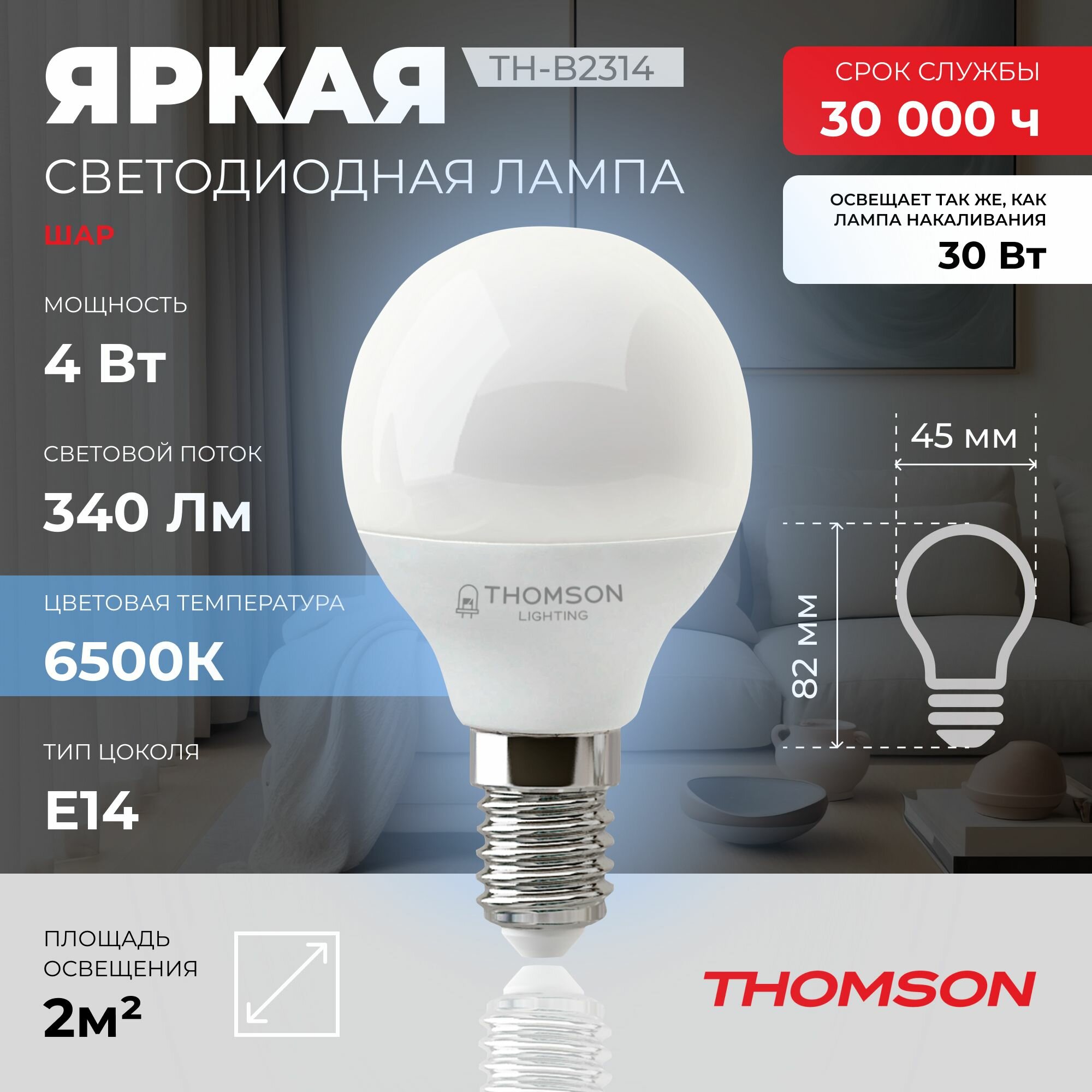 СохранитьЛампочка Thomson TH-B2314 4 Вт, E14, 6500K, шар, холодный белый свет интересное: