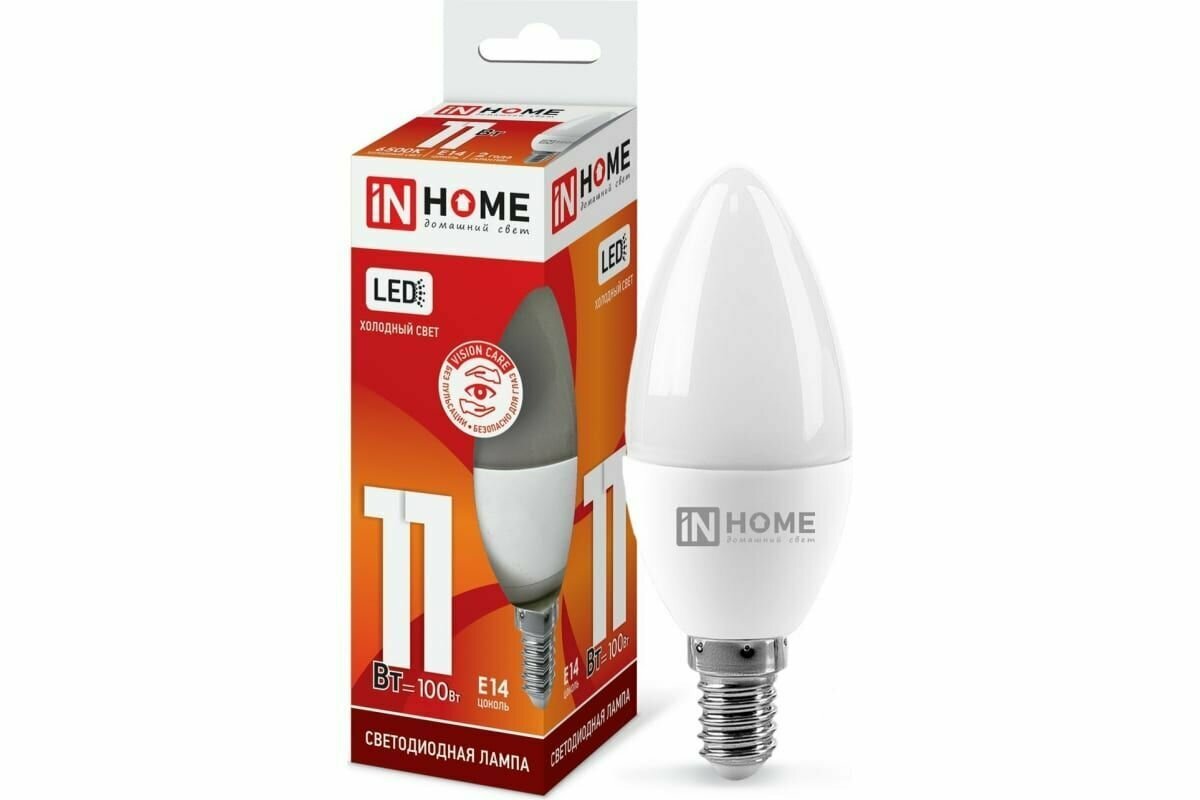 Лампа светодиодная IN HOME LED-СВЕЧА-VC, E14, C37, 11 Вт, 6500 К
