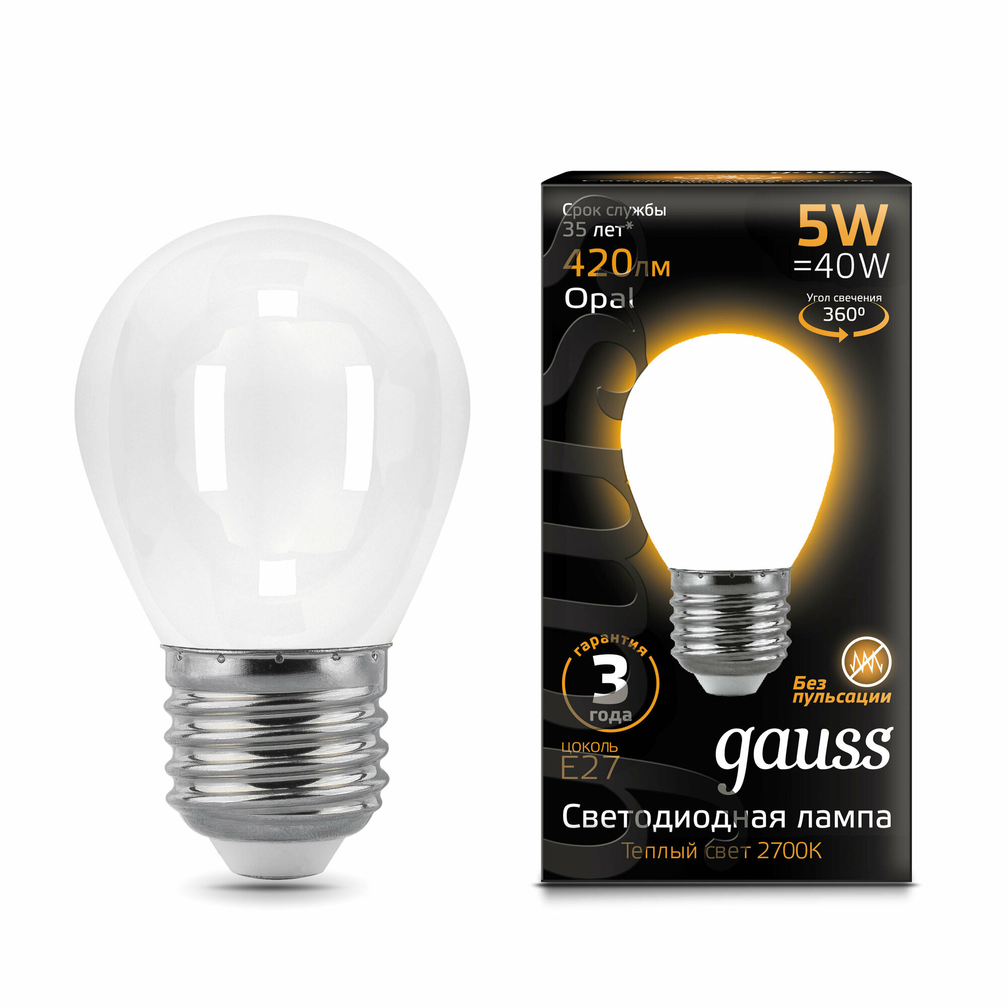Gauss Лампа LED Filament Шар OPAL E27 5W 420lm 2700K SQ 105202105